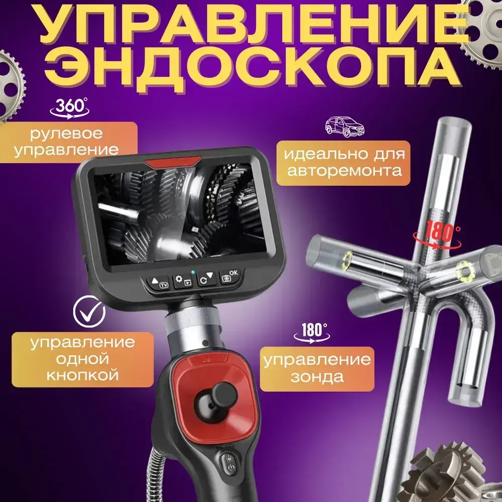 Эндоскоп поворотный 360 градусов с дисплеем /6.2 мм/камера наблюдения