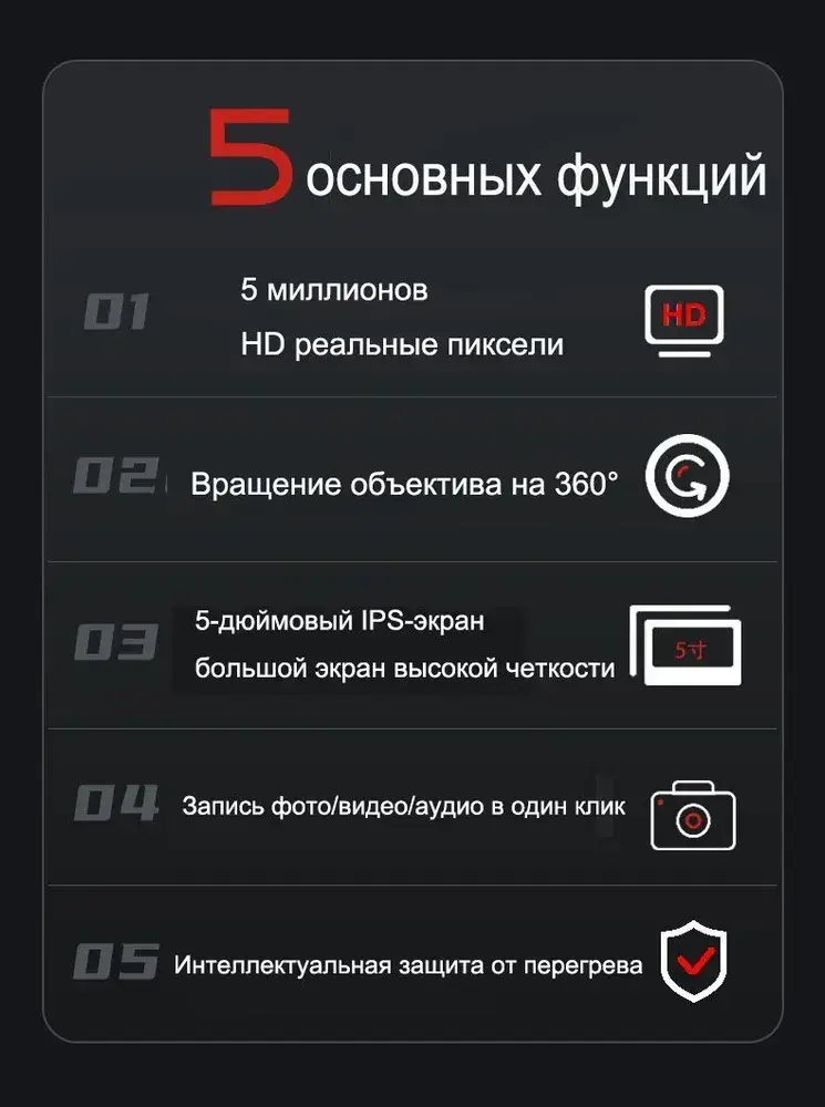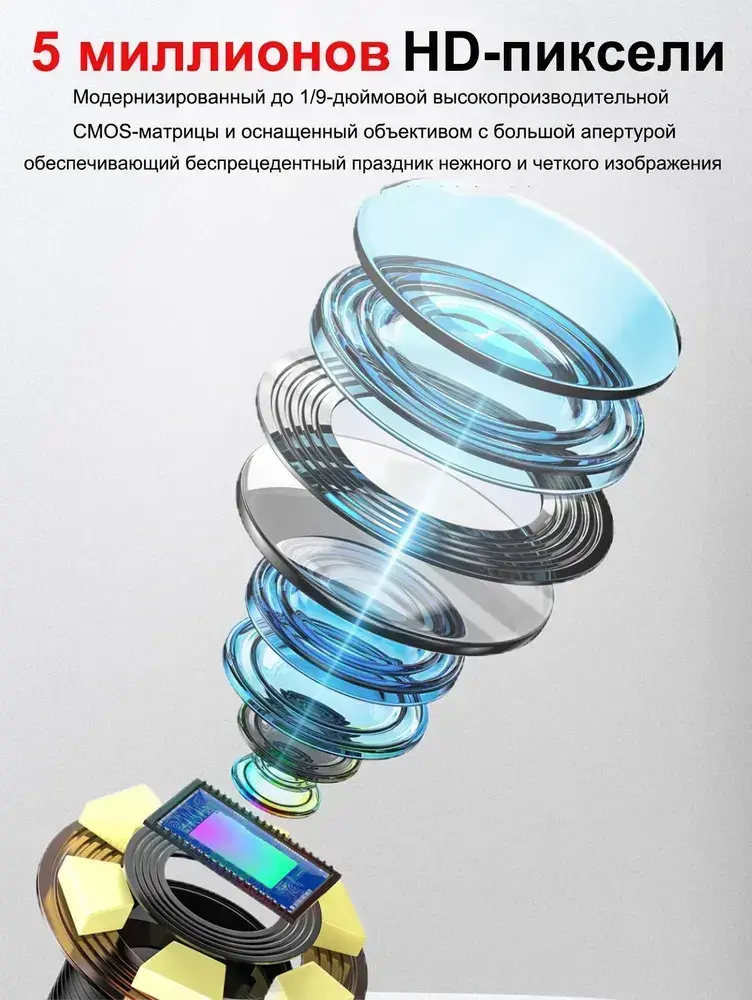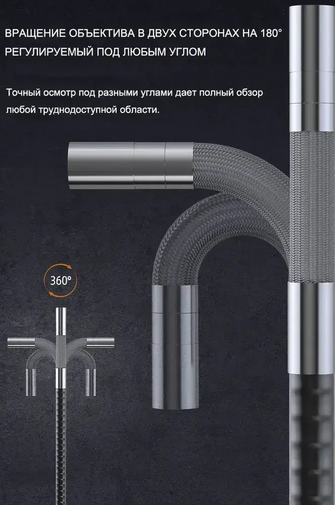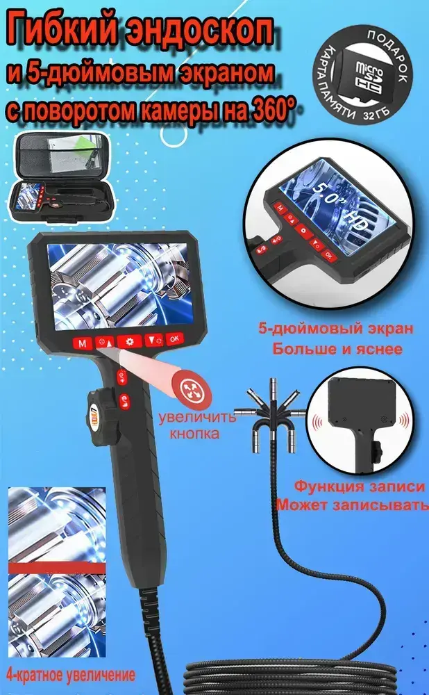 Эндоскоп с экраном 5", поворотный, с возможностью фото, аудио и видеосъемки, 6 мм, 1 м