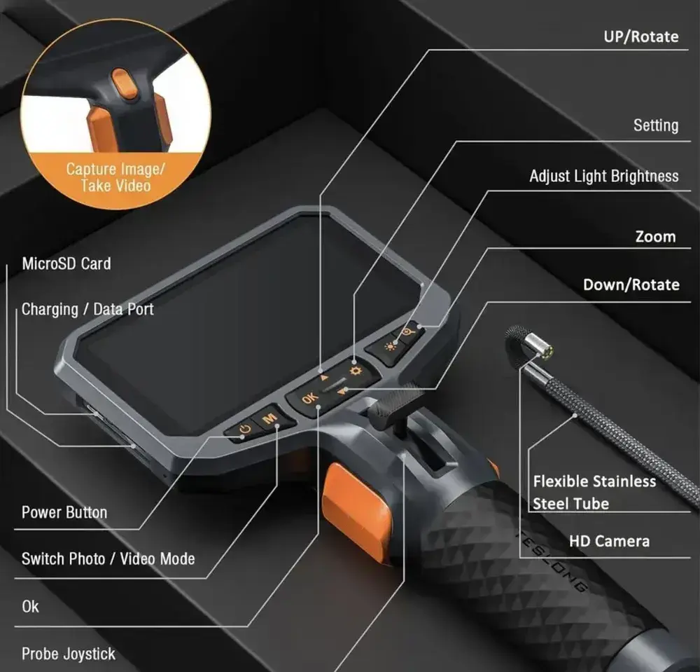 Эндоскоп/180 градусов/5.5 мм+ ЖК ДИСПЛЕЙ/ручной эндоскоп,Teslong