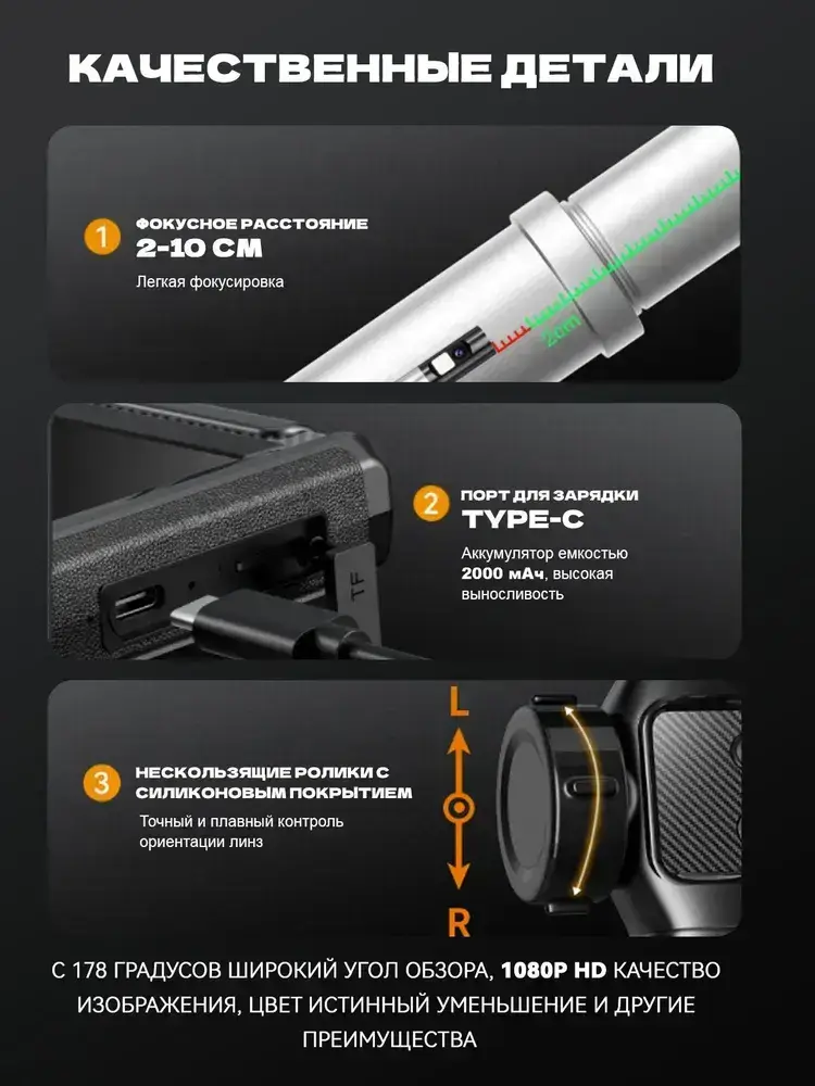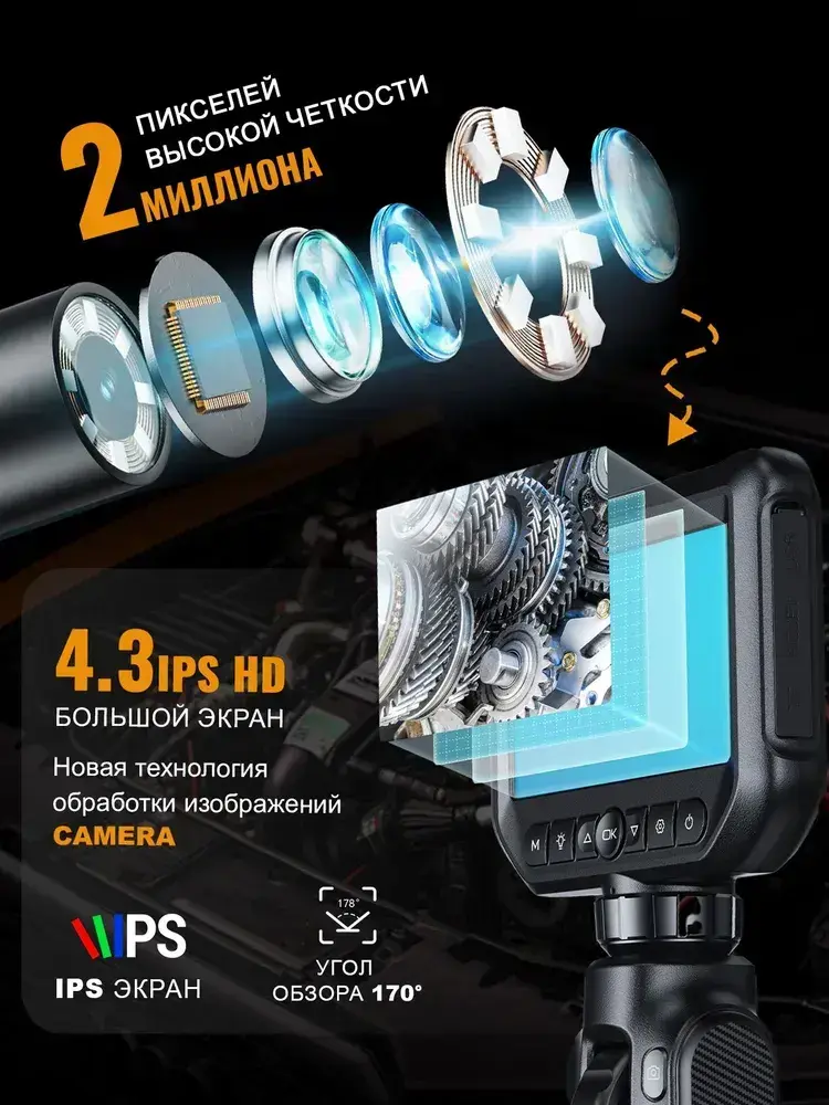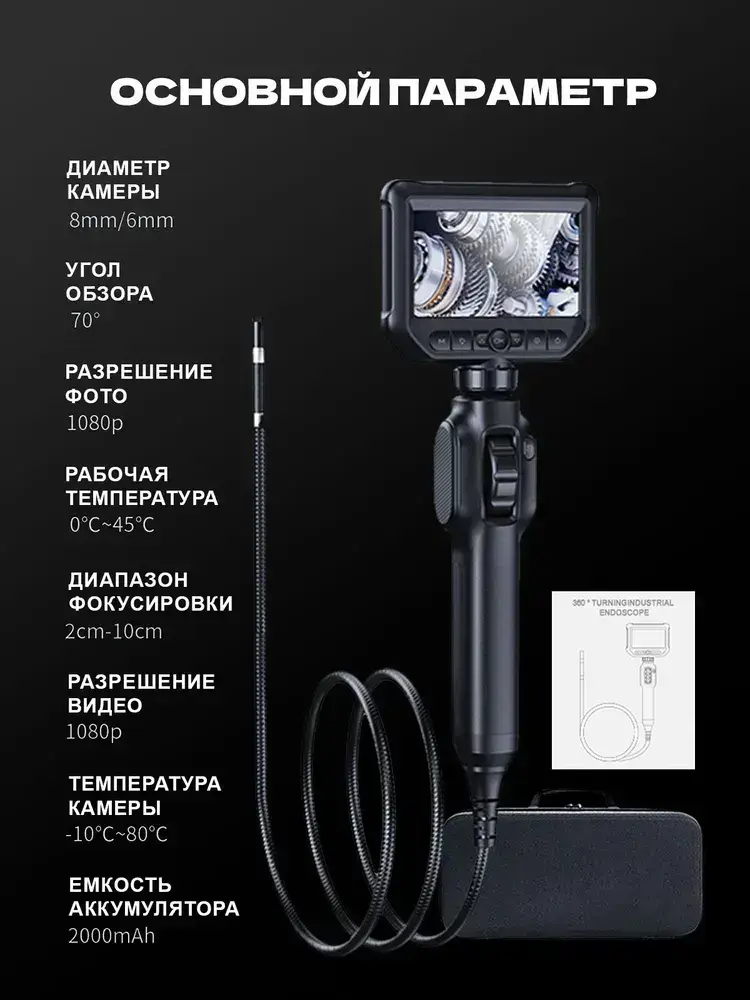 Эндоскоп/180 градусов/8 мм с ЖК -ДИСПЛЕЕМ/ручной эндоскоп с дисплеем, для осмотра канализационной трубы автомобильного двигателя