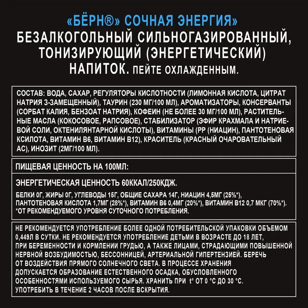 Энергетический напиток Burn Сочная энергия, 449 мл