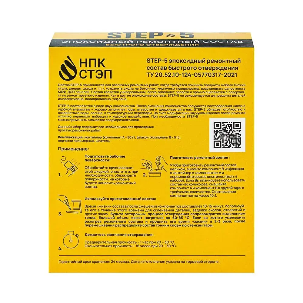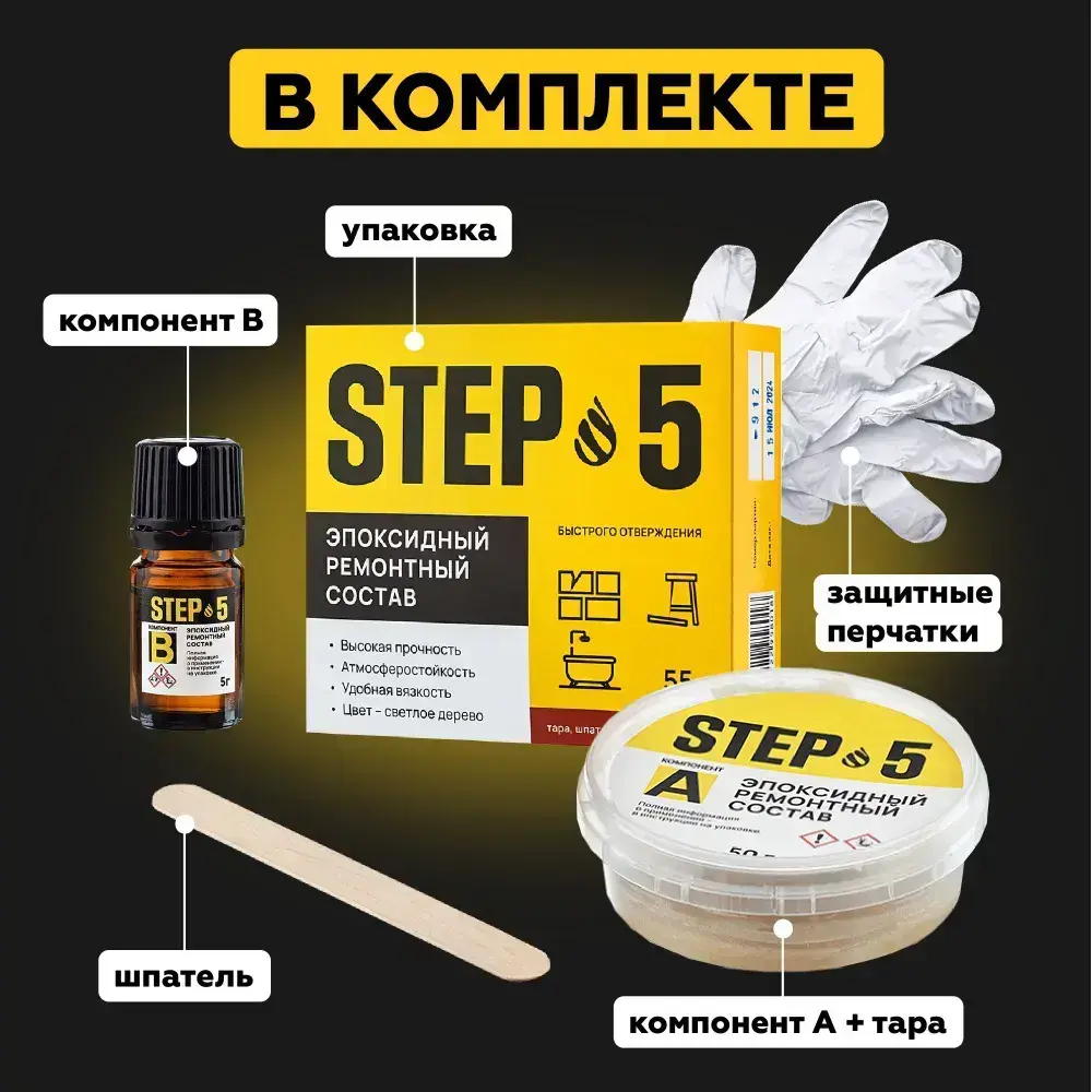 Эпоксидный ремонтный состав (эпоксидная шпатлевка) STEP-5, 55г
