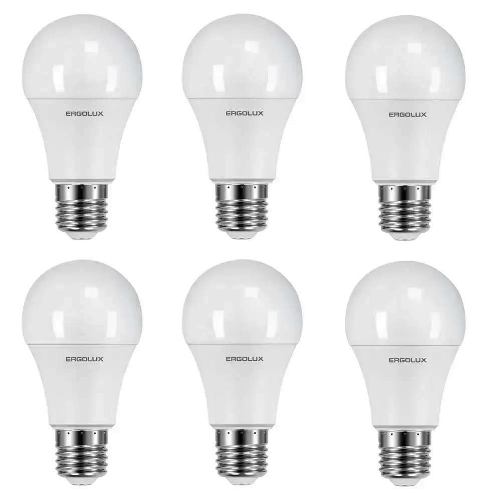 Ergolux Лампа LED-A60-11W-E27-6K, ЛОН, дневной свет, 6 шт