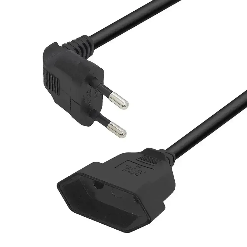 Европейский 2-контактный штекер к женскому кабелю адаптера питания Шнур с изгибом под углом 90 градусов Удлинительный кабель