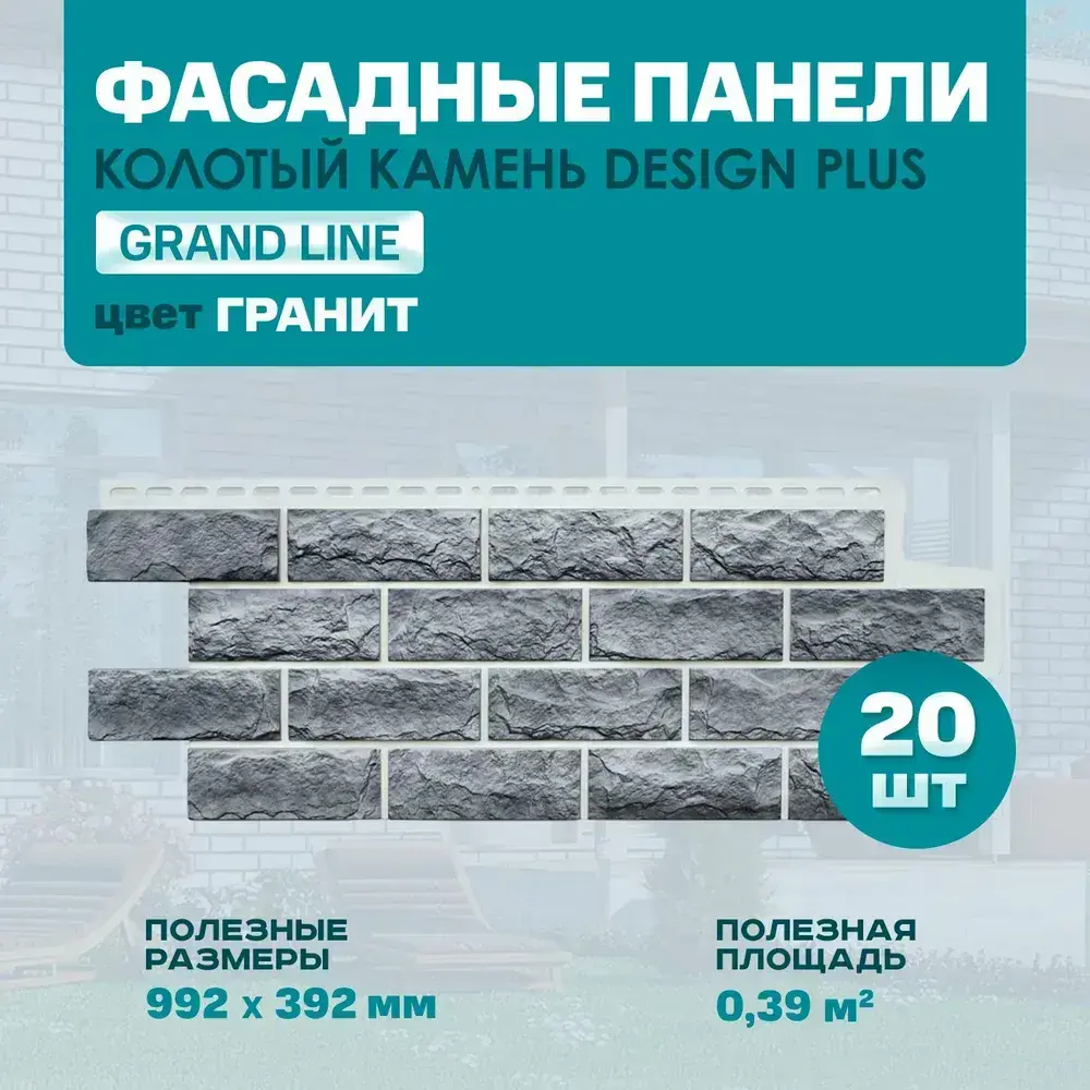 Фасадная панель Grand Line Колотый камень Design Plus гранит 0.992*392мм 0.39м2 2уп-20шт
