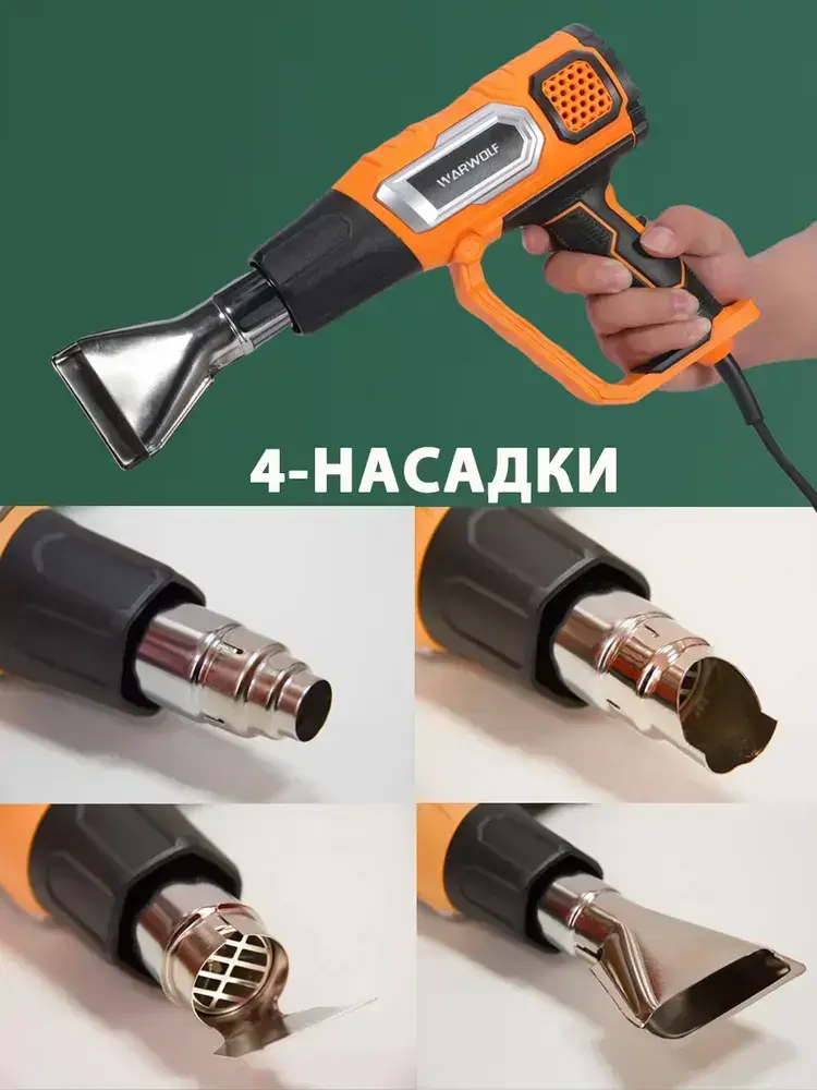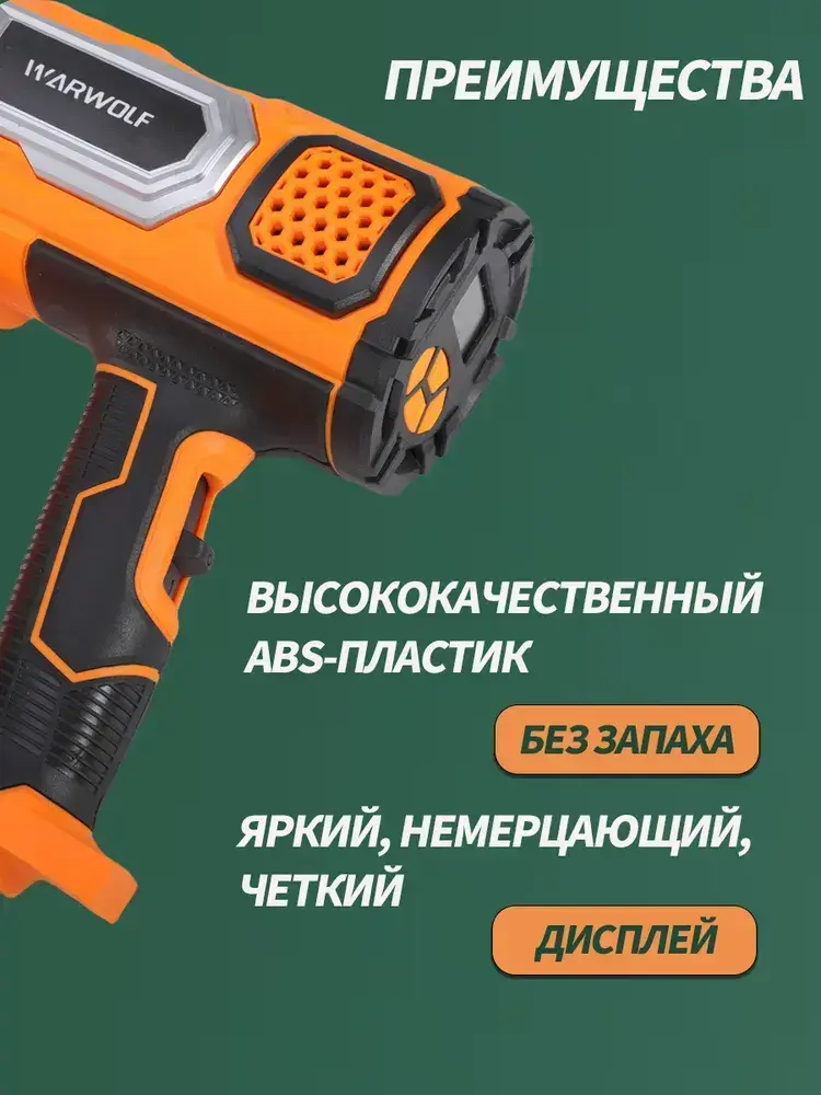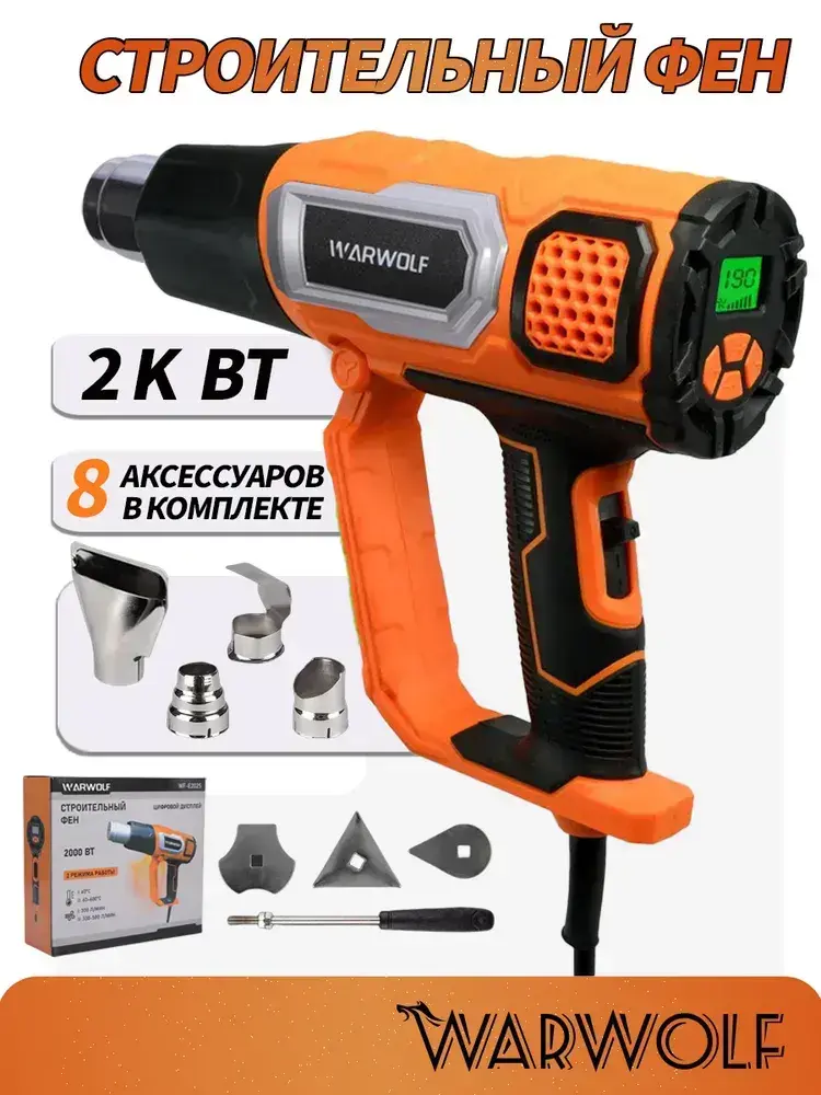 Фен строительный с регулировкой температуры Вихрь, с дисплеем, (2000 Вт, 60-600 градусов)