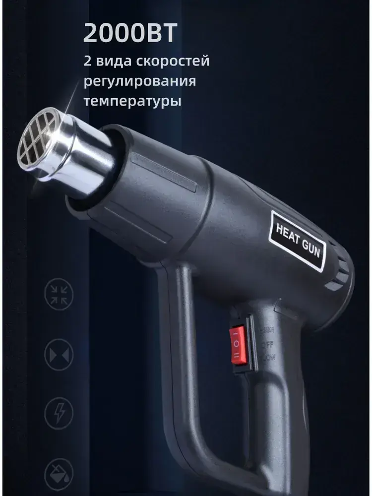 Фен строительный технический 2000 Вт с регулировкой температуры