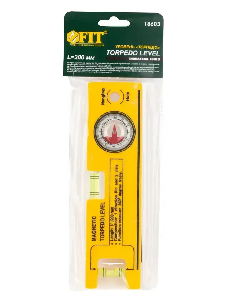 FIT Уровень строительный магнитный 20 см 3 глазка с угломером для работы в ограниченном пространстве