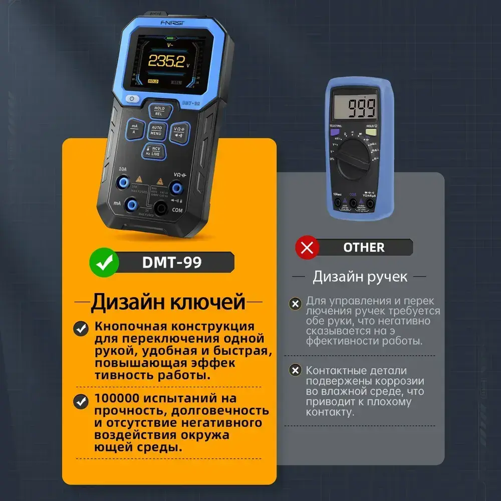 FNIRSI DMT-99 Цифровой мультиметр, 9999 отсчетов Умный профессиональный тестер 1000 В 10 А True RMS Автоматический диапазон переменного тока постоянного тока Ом Гц емкость