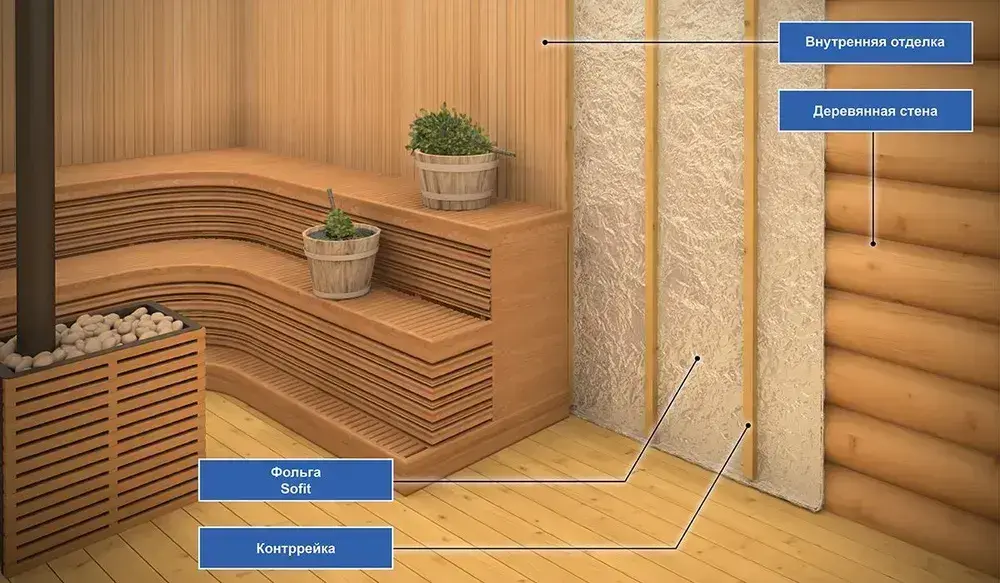 Фольга для бани и сауны строительная Sofit, 30 м2, 100мкм Алюминиевая пароизоляция, Теплоизоляция для пола