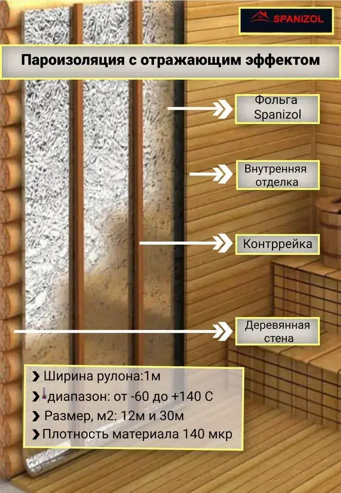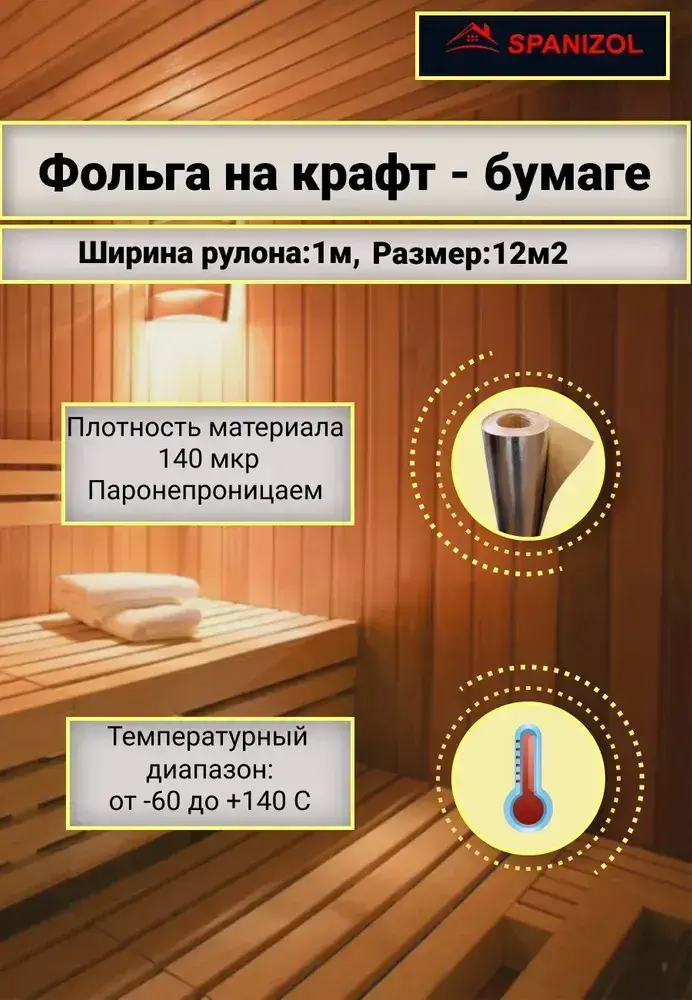 Фольга на крафт бумаге теплоизоляция для бани и сауны, парных Spanizol LB 12 м2