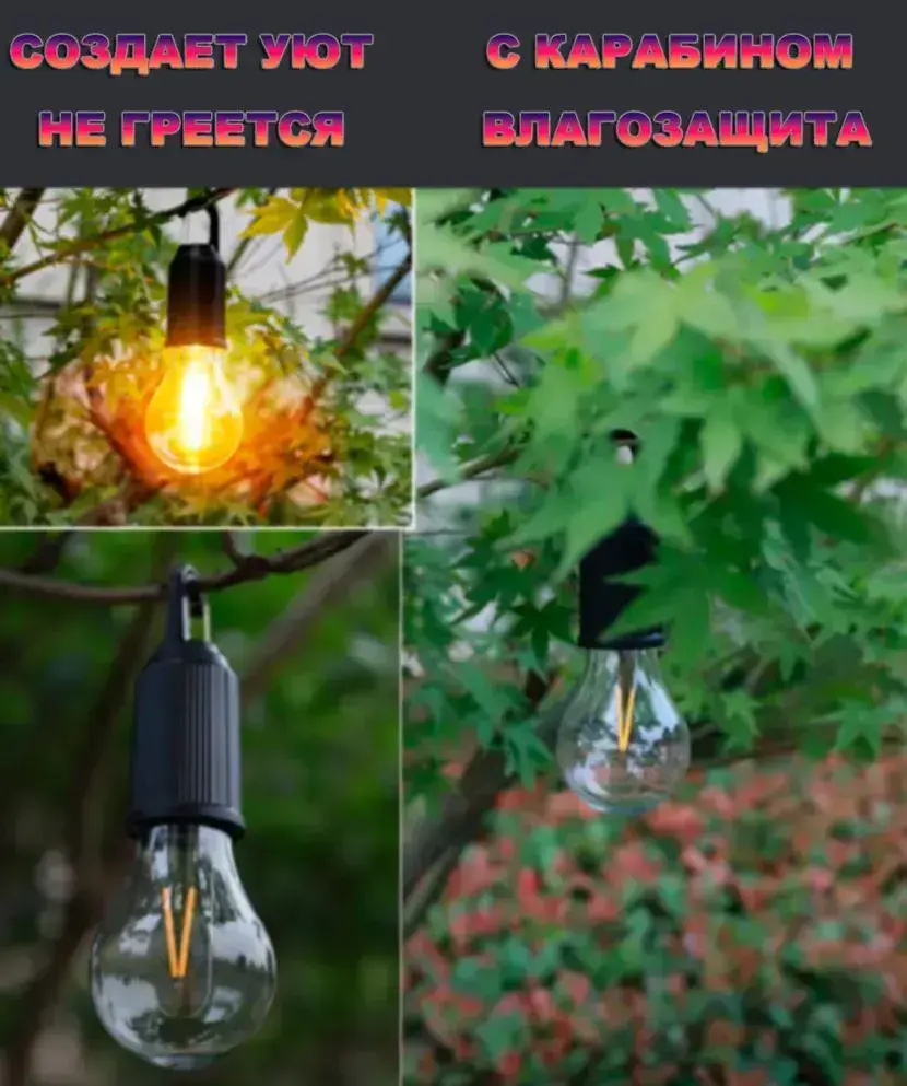 Фонарь аккумуляторный кемпинговый TH142-20 / Лампочка с крючком в палатку / Фонарик портативный