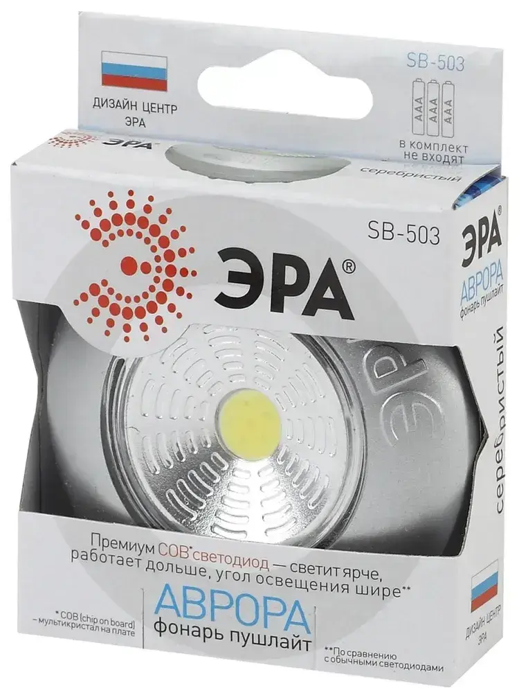 Фонарь светодиодный ЭРА SB-503 Аврора пушлайт мощный на липучке на батарейках