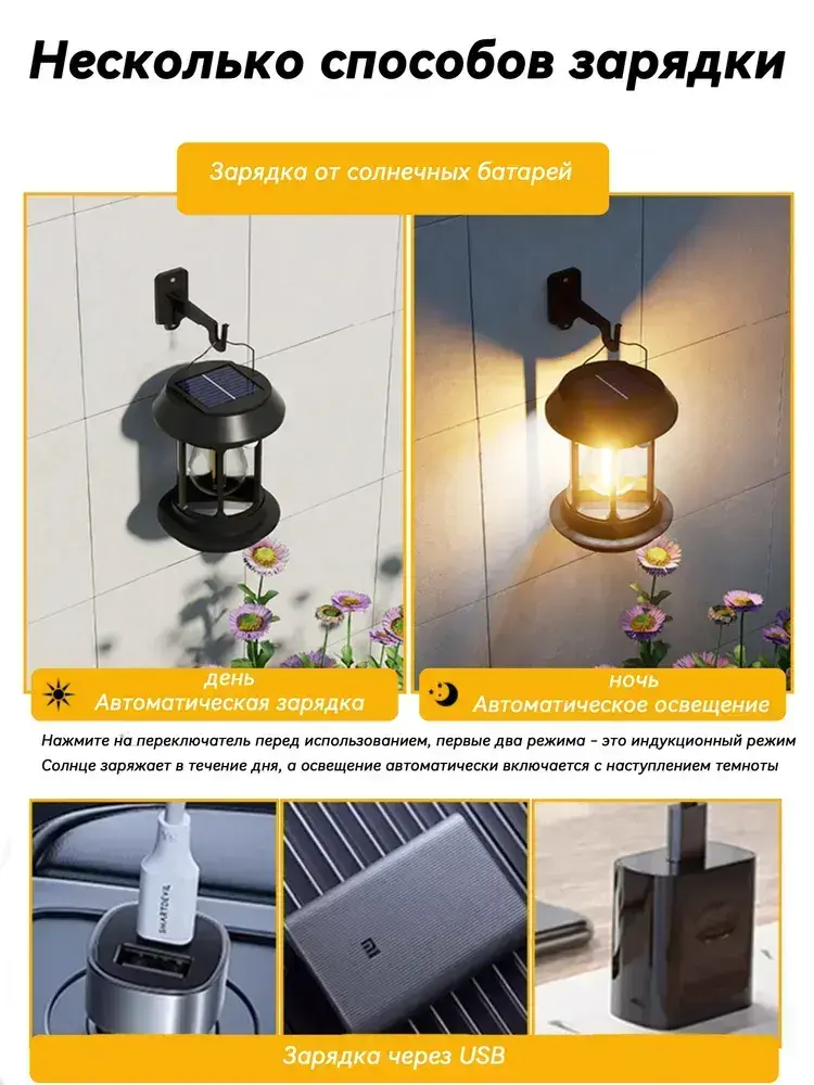Фонари с солнечным датчиком движения, Наружные подвесные водонепроницаемые фонари для кемпинга, Перезаряжаемые, Украшение для садового двора