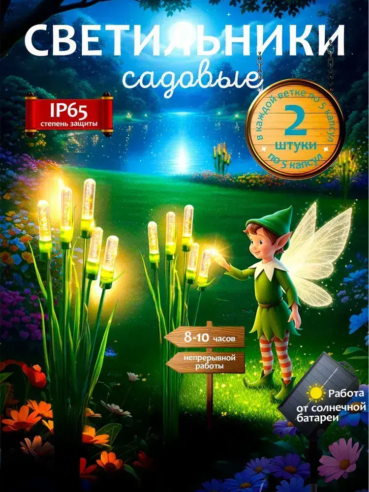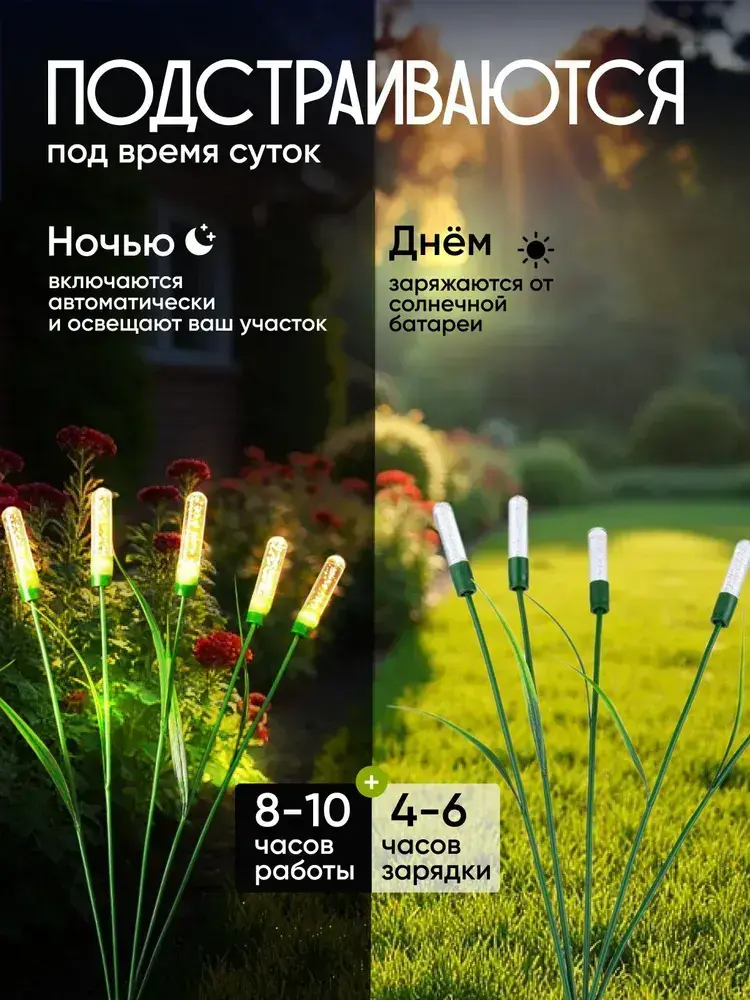 Фонарики на солнечных батареях садовые. Садовые светильники на солнечных батареях, камыши 2 штуки