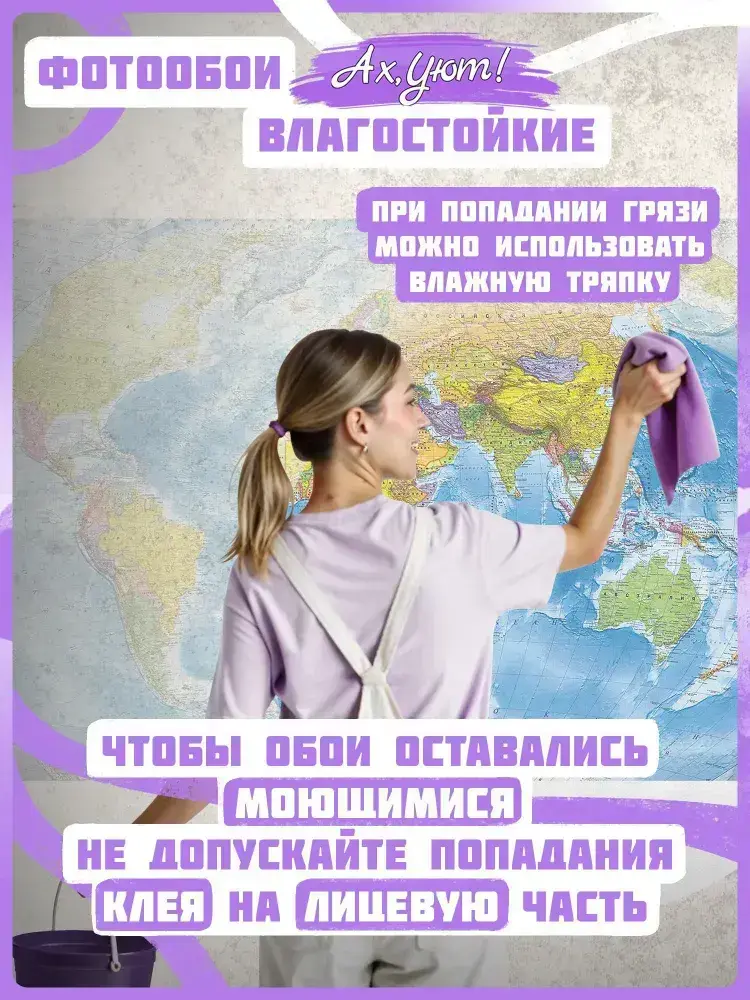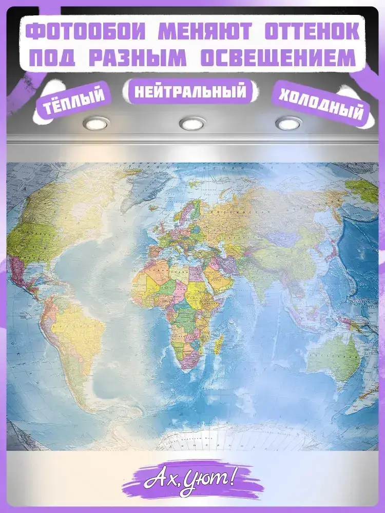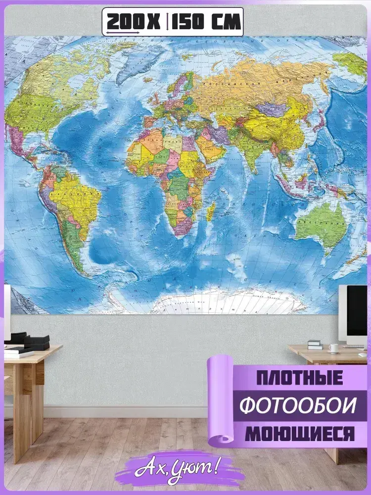 Фотообои Ах, Уют! флизелиновые моющиеся 200х150 см классическая политическая карта мира