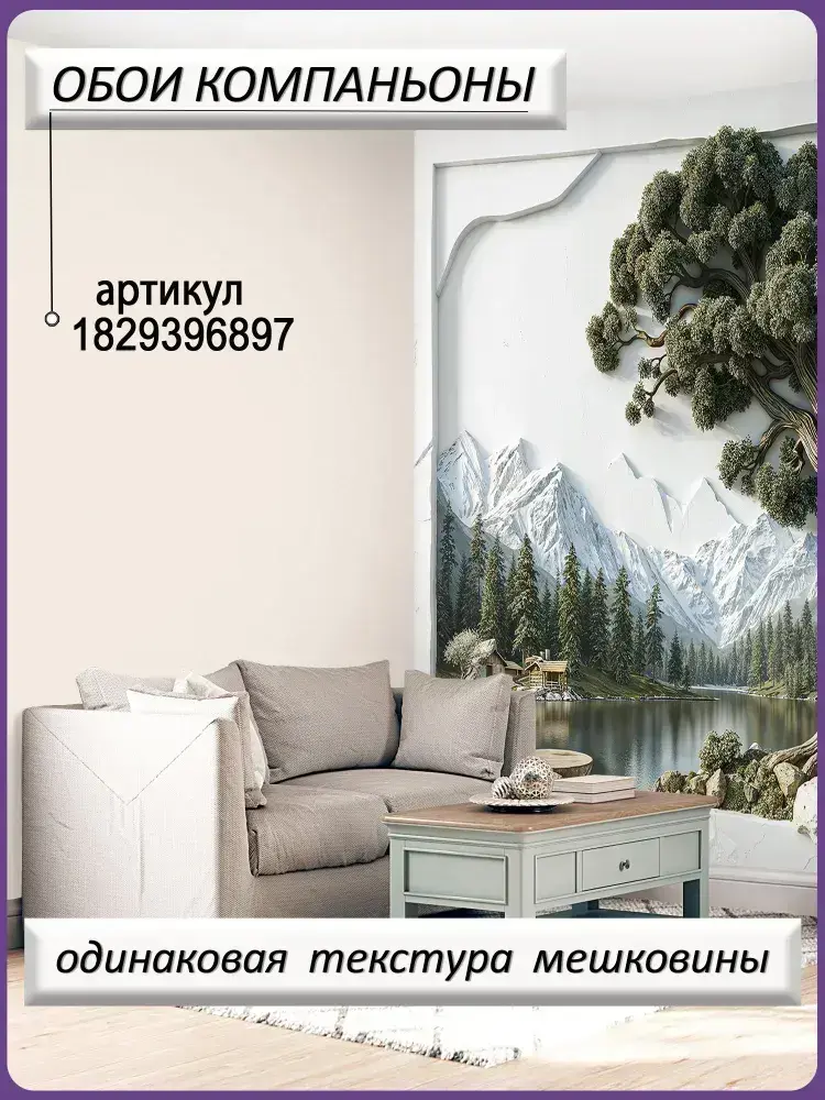 Фотообои Ах,Уют флизелиновые моющиеся 3D-панно 400х270 Снежные горы и лес в тумане
