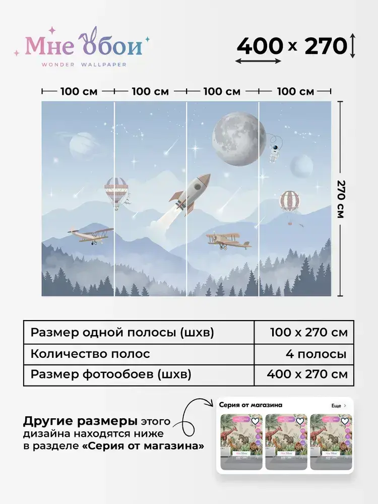 Фотообои детские флизелиновые на стену 3D "Время полета" 400х270 (ШхВ), 3д обои в детскую