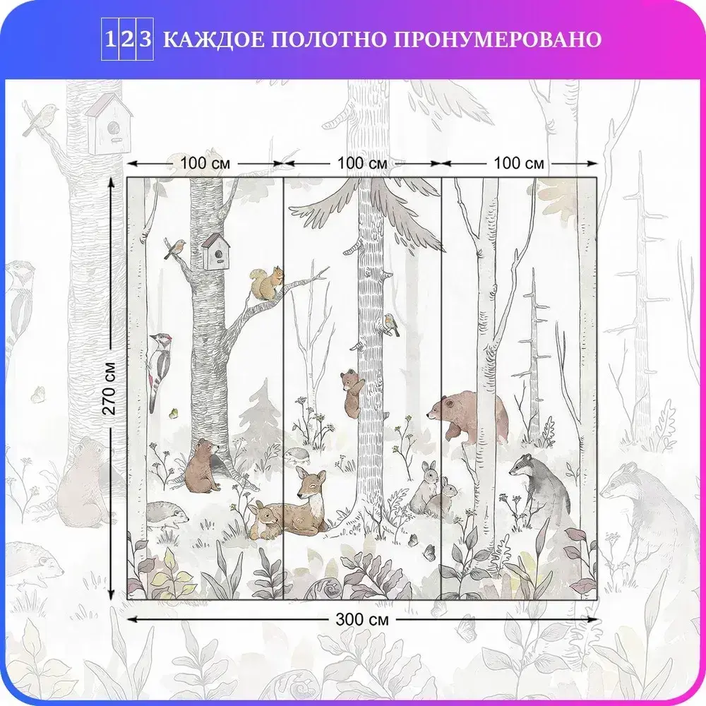 Фотообои детские Лесные животные 300х270 см Luxury Walls AM38303