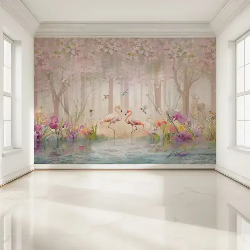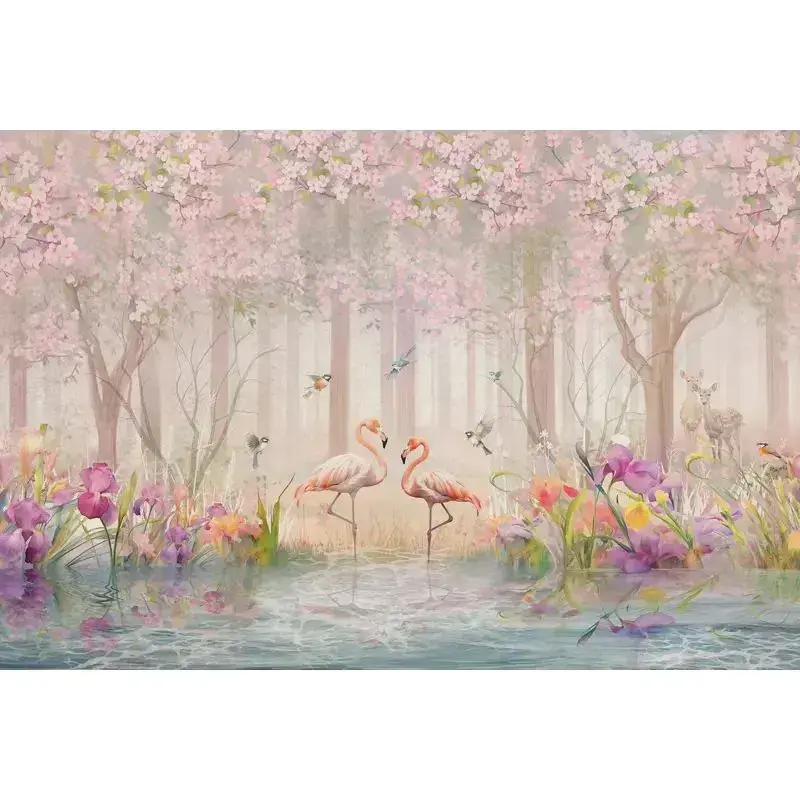 Фотообои флизелиновые 400x271, рисунок фламинго, практичный