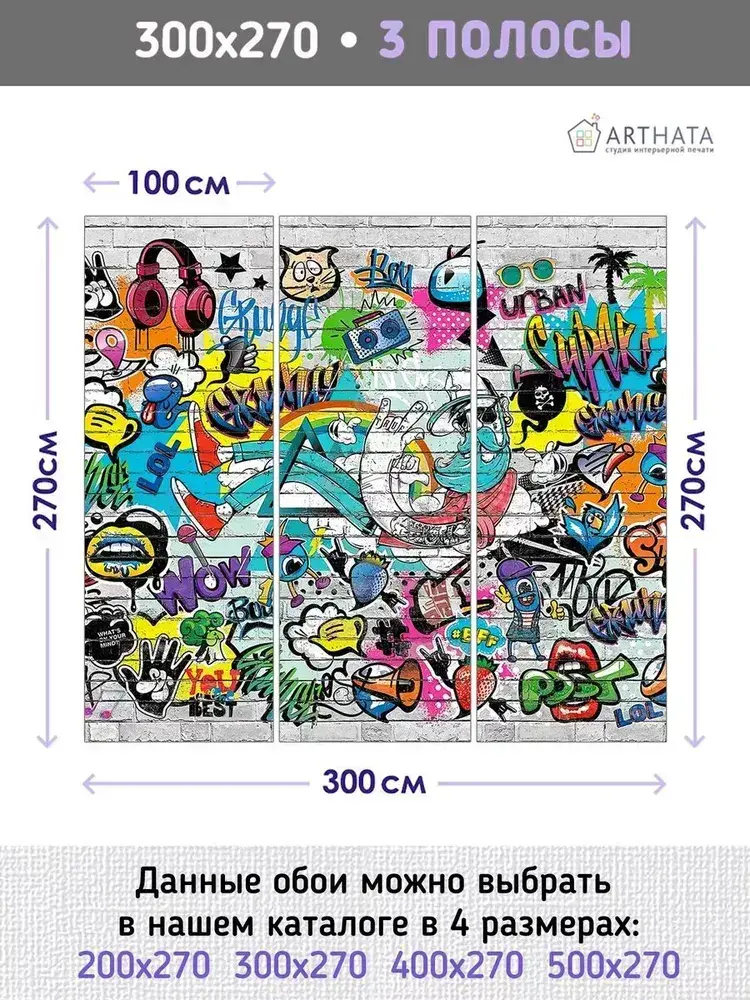 Фотообои граффити на кирпичной стене в детскую 300х270