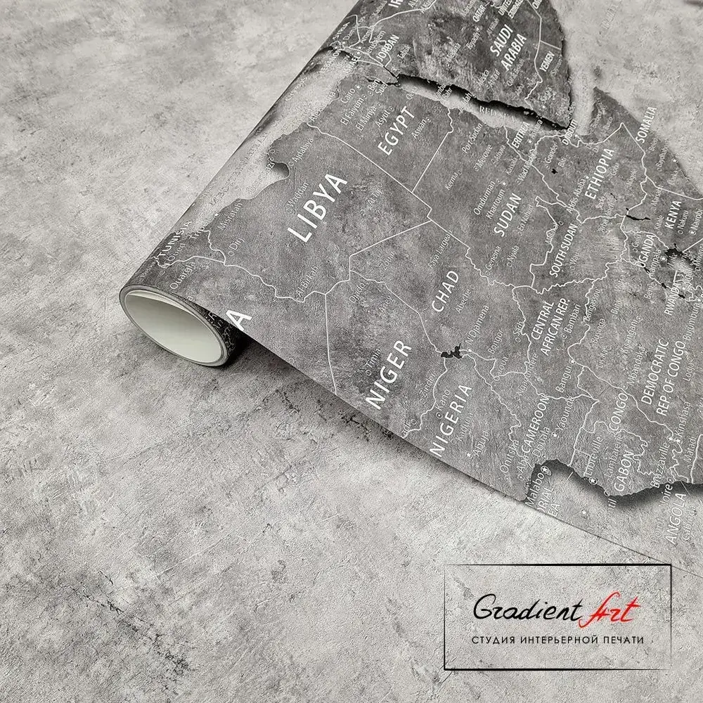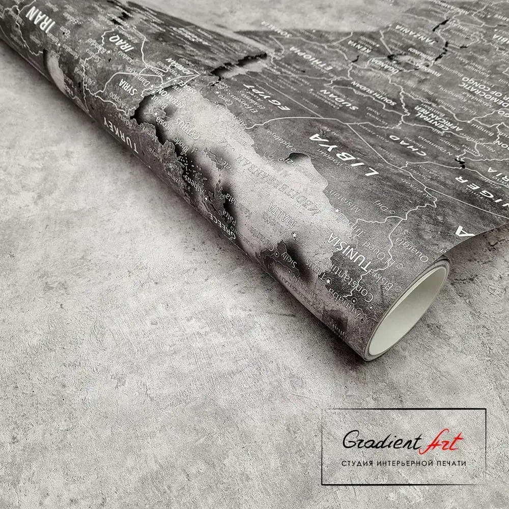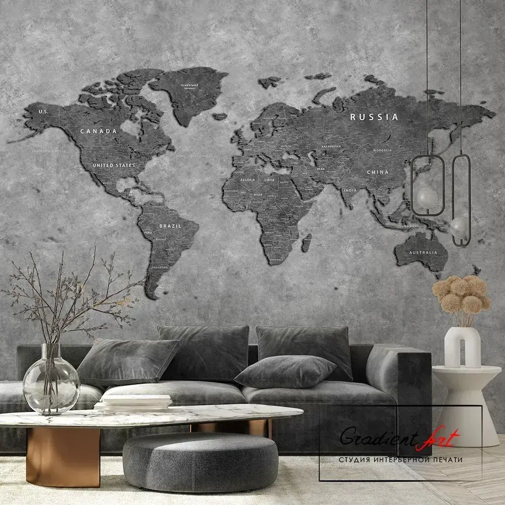 Фотообои карта мира бетон лофт "Карта мира" 315см x 270см флизелин премиум моющиеся GradientArt WM2B315270G