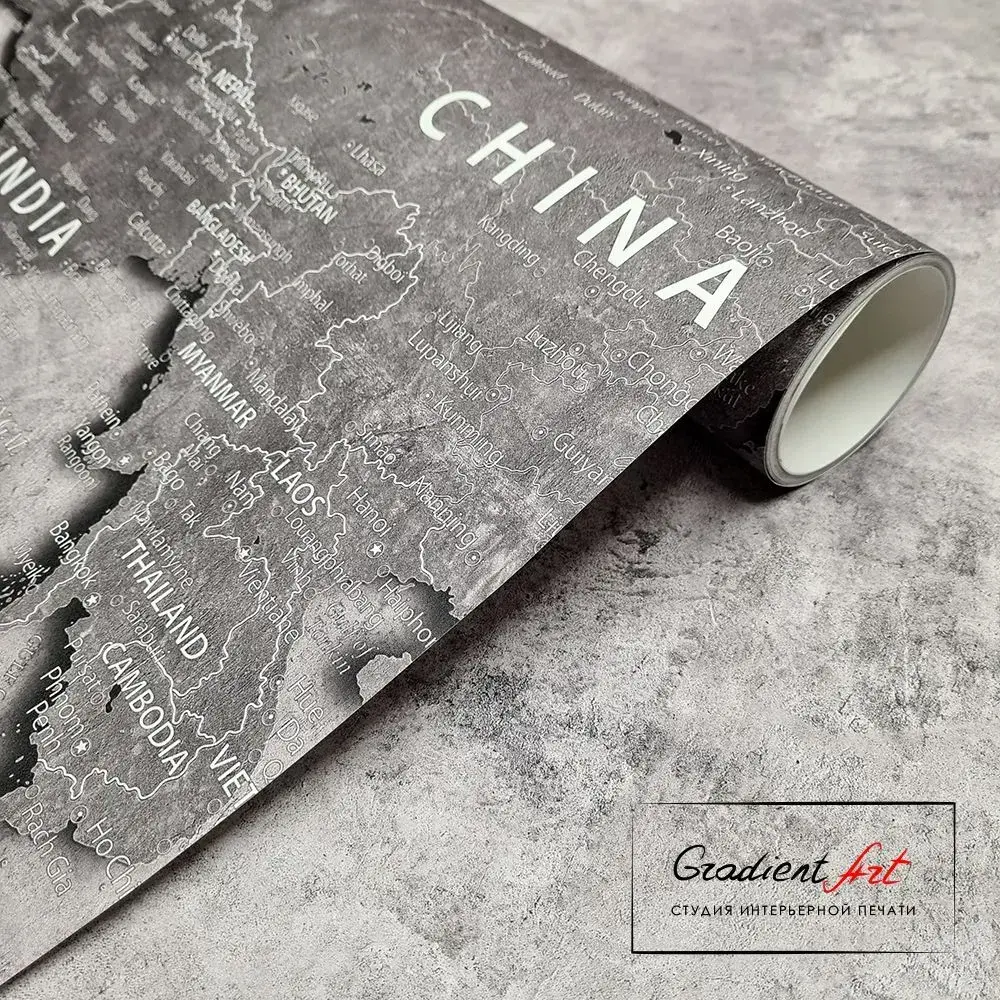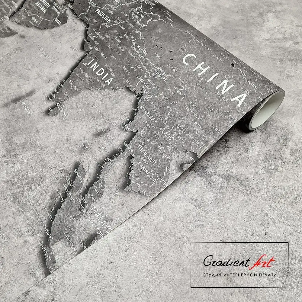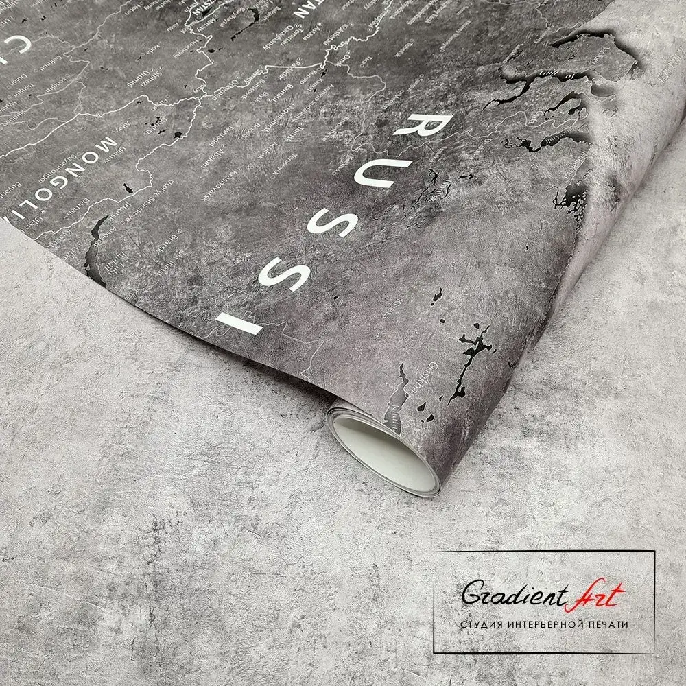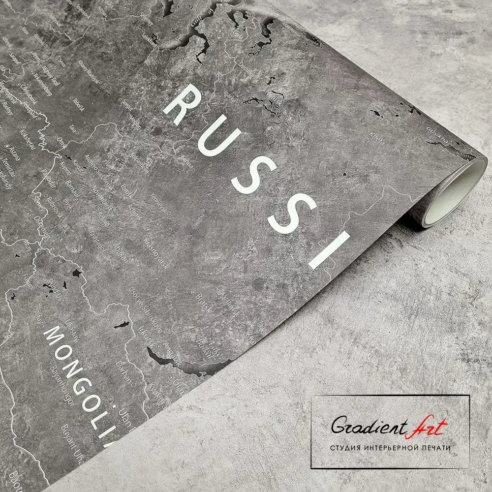 Фотообои карта мира бетон лофт "Карта мира" 315см x 270см флизелин премиум моющиеся GradientArt WM2B315270G