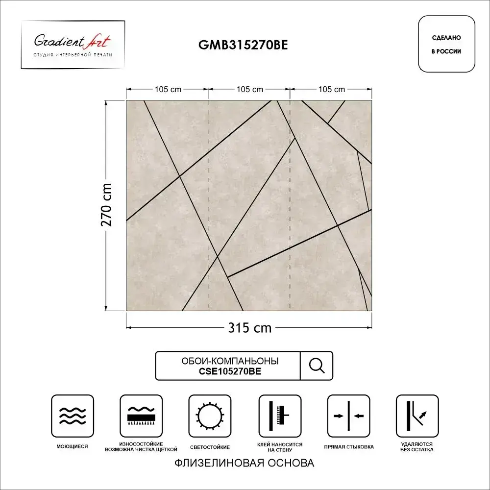 Фотообои лофт бетон геометрия "Геометрия" 315см x 270см флизелин премиум моющиеся GradientArt GMB315270BE