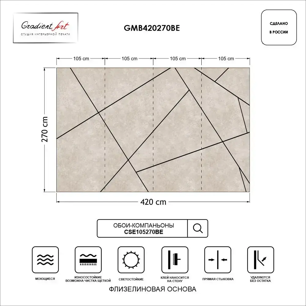 Фотообои лофт бетон геометрия "Геометрия" 420см x 270см флизелин премиум моющиеся, GradientArt GMB420270BE