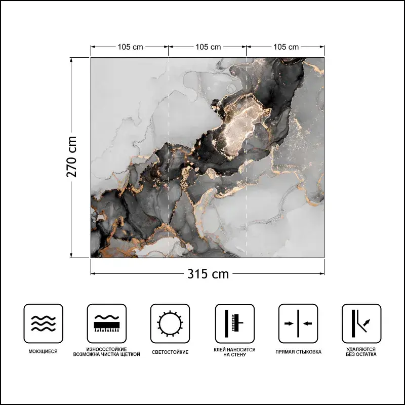 Фотообои мрамор абстракция флюид "Флюид #2", 315см x 270см, флизелин премиум моющиеся GradientArt FLU2315270N