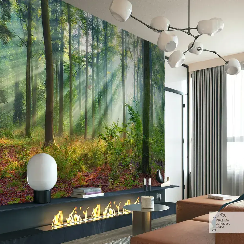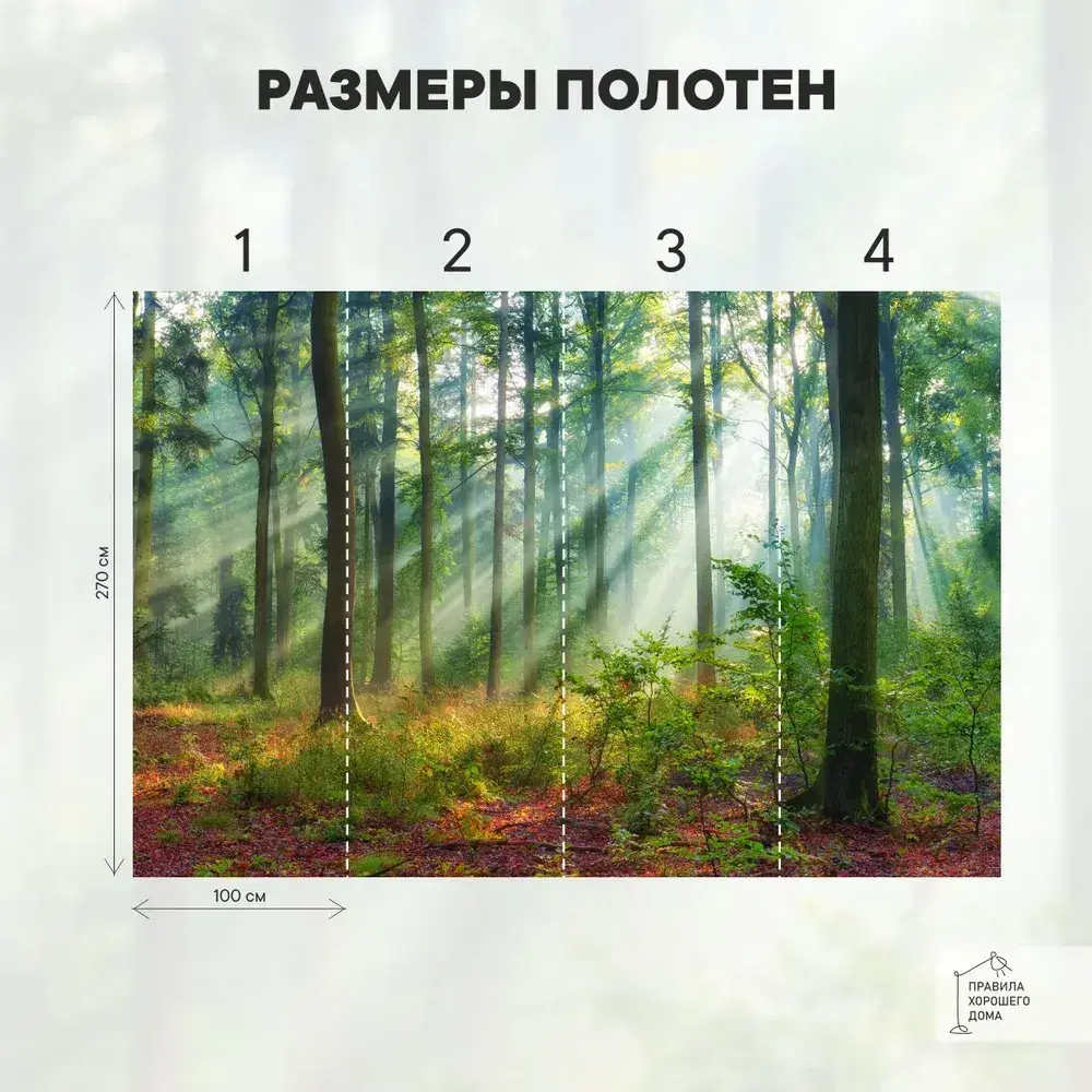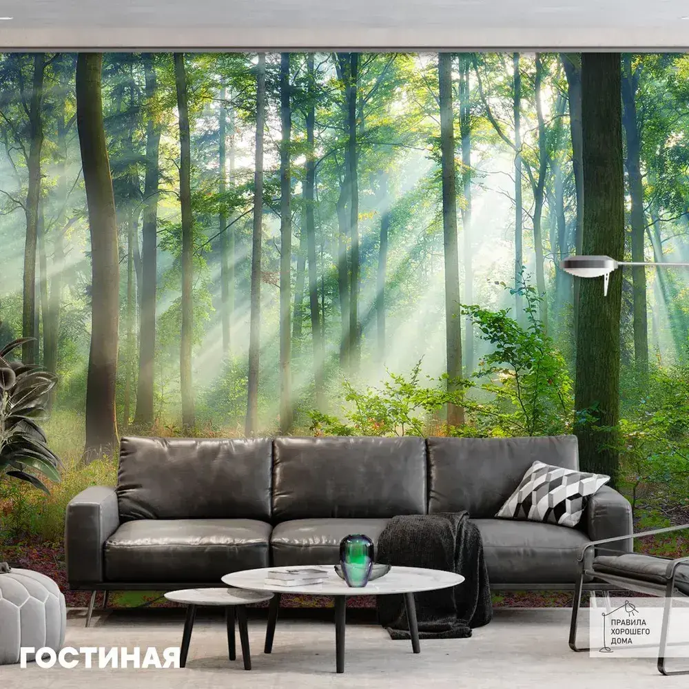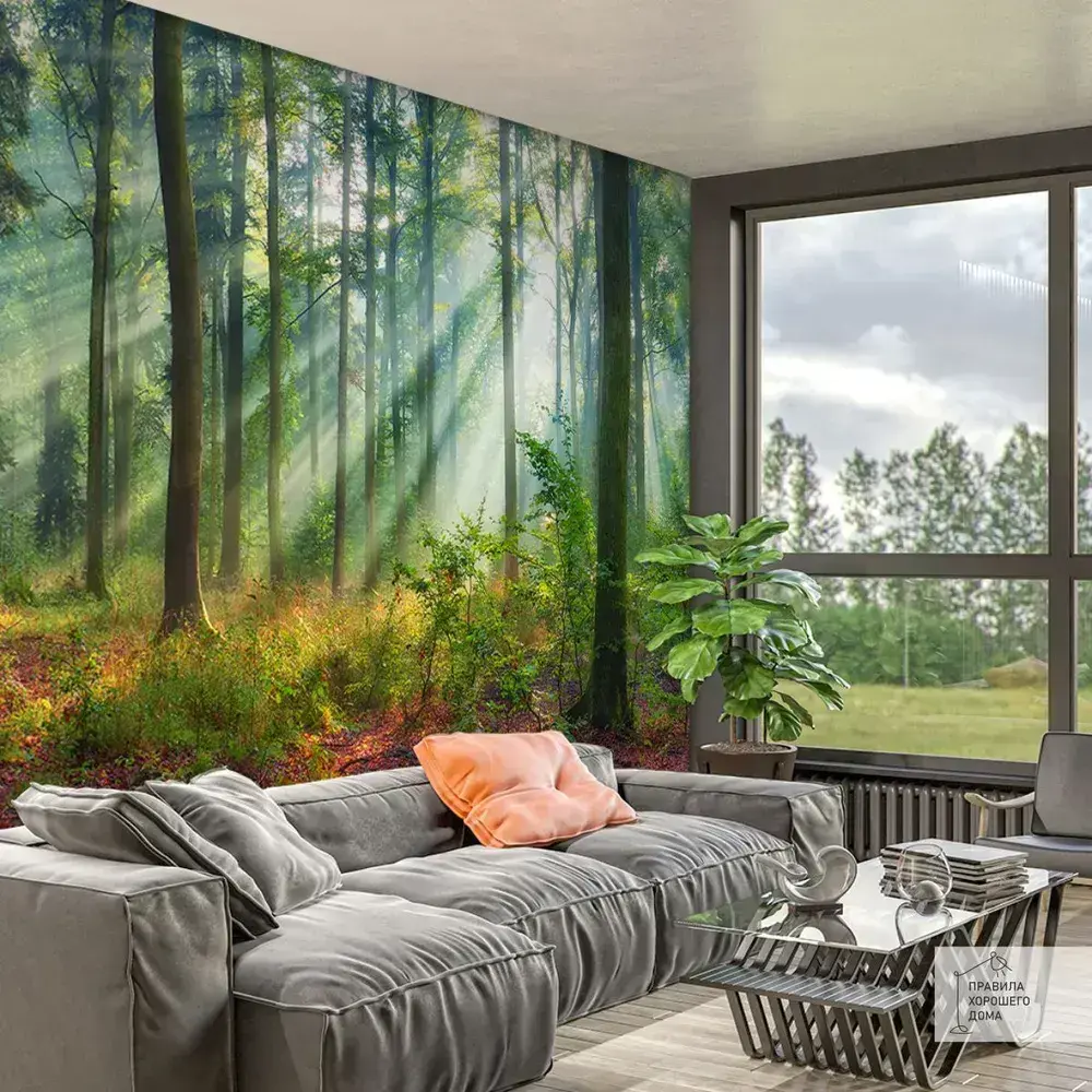 Фотообои на стену флизелиновые 3d 400х270 Лес Природа. 3д фото обои для кухни моющиеся виниловые, интерьерное покрытие 3d эффект в спальню, декор для дома