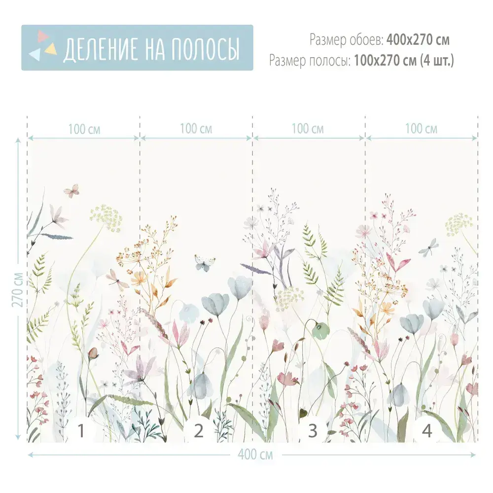 Фотообои на стену Полевые Цветы 400*270 см флизелиновые в детскую спальню зал