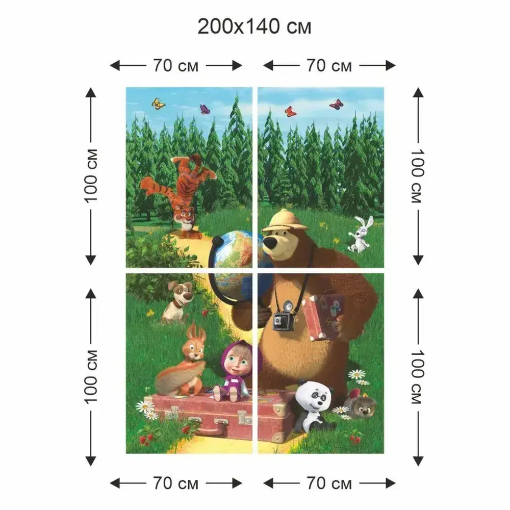 Фотообои "Симфония" бумажные Маша и Медведь Большое путешествие 140*200 см.