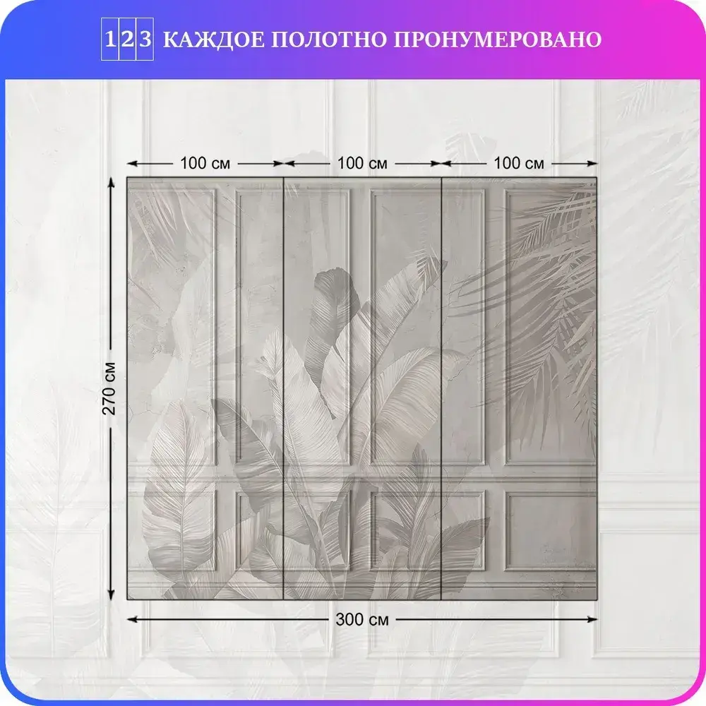 Фотообои Тропические листья на бетоне 300х270 см Luxury Walls AM39103