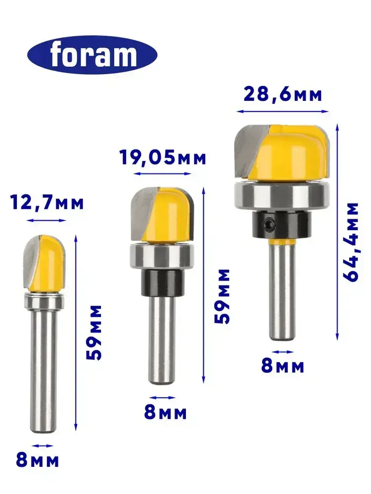Фреза для менажниц, Foram, 12,7-19,05-28,6 3шт, хвостовик 8мм