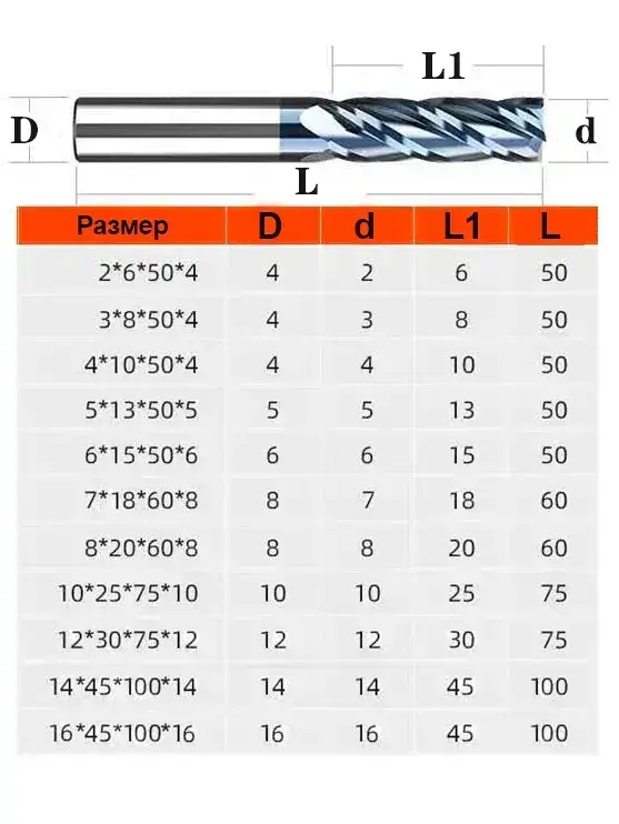 Фреза Концевая d10xD10x75L по алюминию твердосплавная HRC58 DLC, 10мм