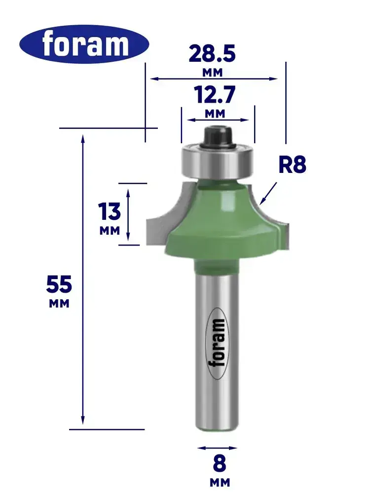 Фреза кромочная калевочная, FORAM, R8, хвостовик 8мм, подшипник 12,7мм