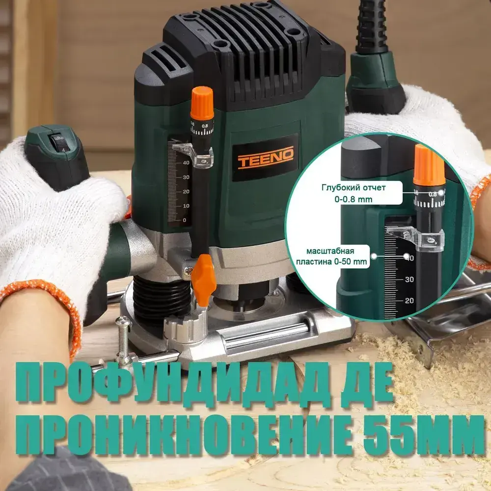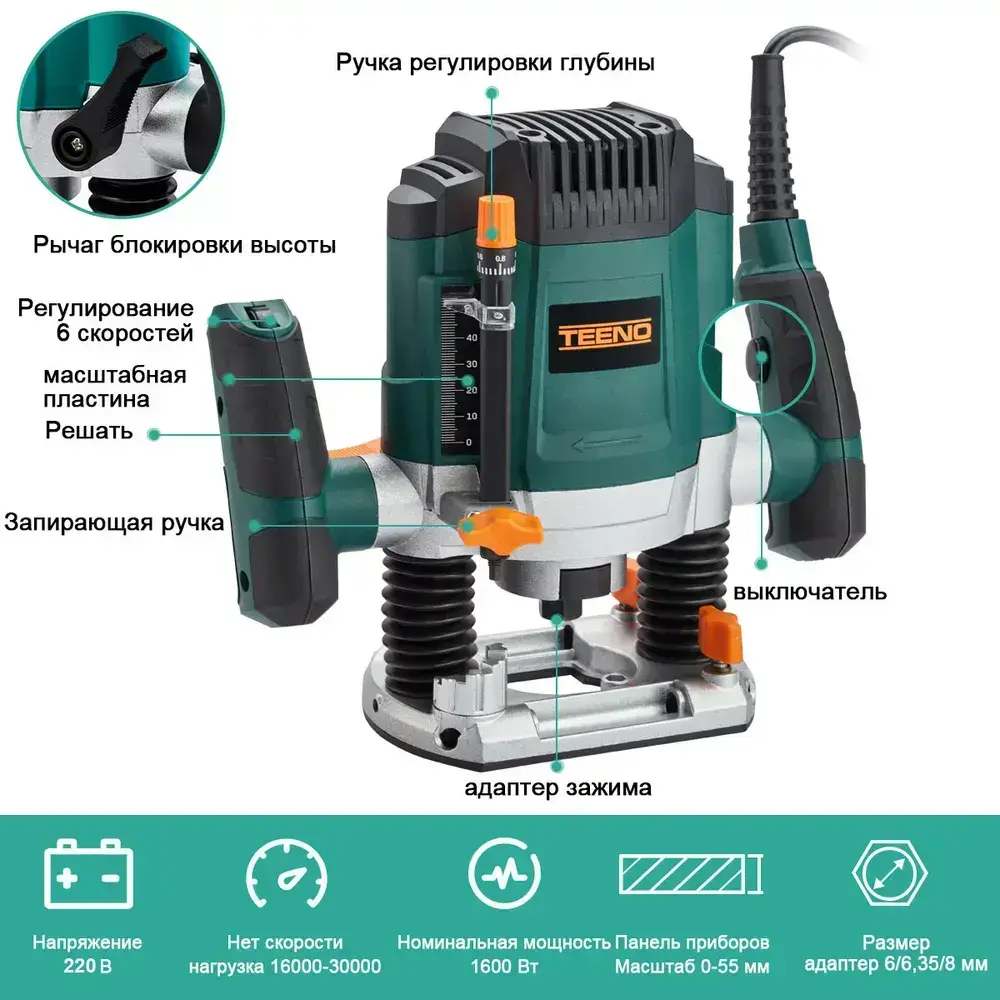 Фрезер по дереву электрический TEENO 1600 Вт,12 фрез,цанга 6/6.35/8 мм,16000-30000 об/мин