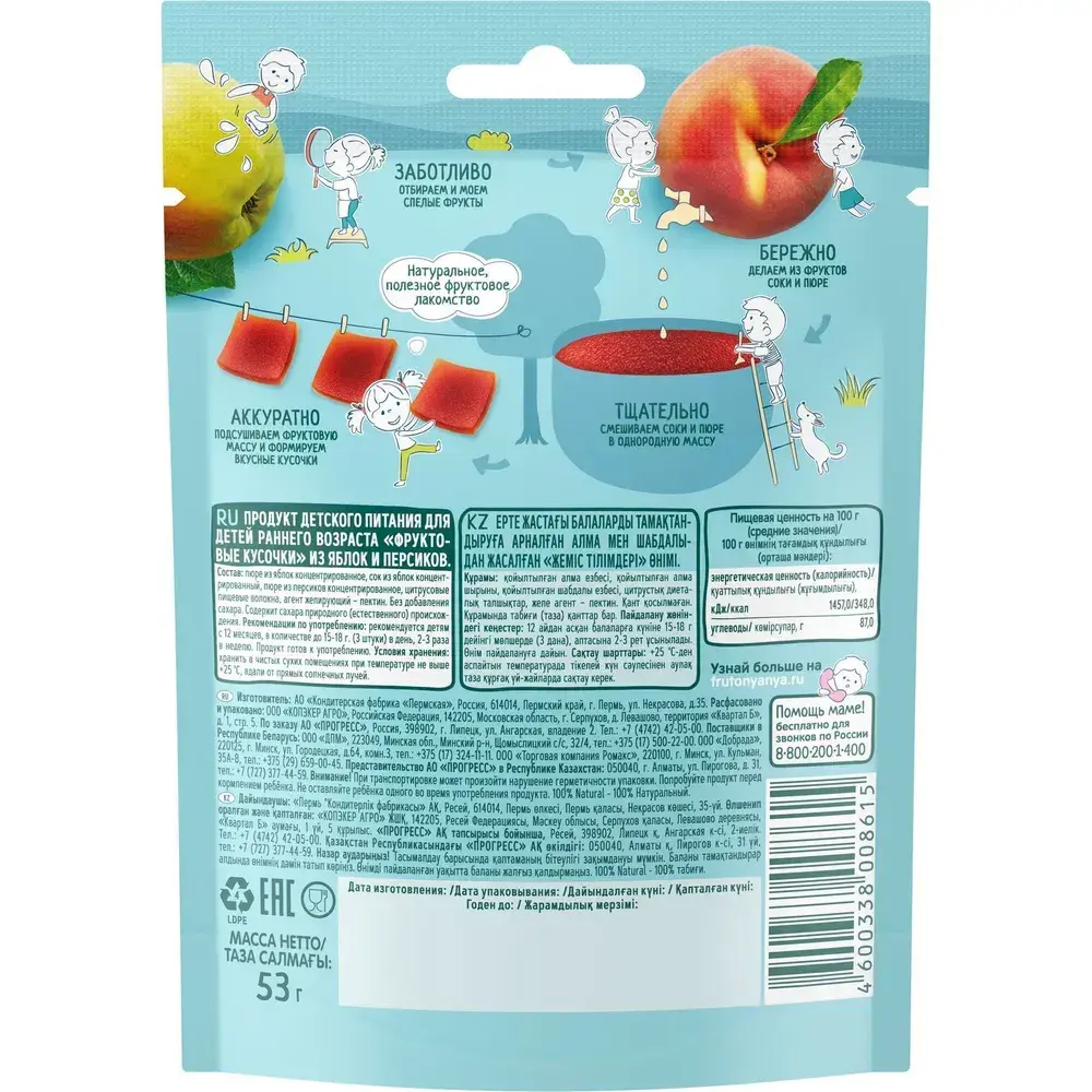 Фруктовые кусочки ФрутоНяня яблоко, персик, 53г