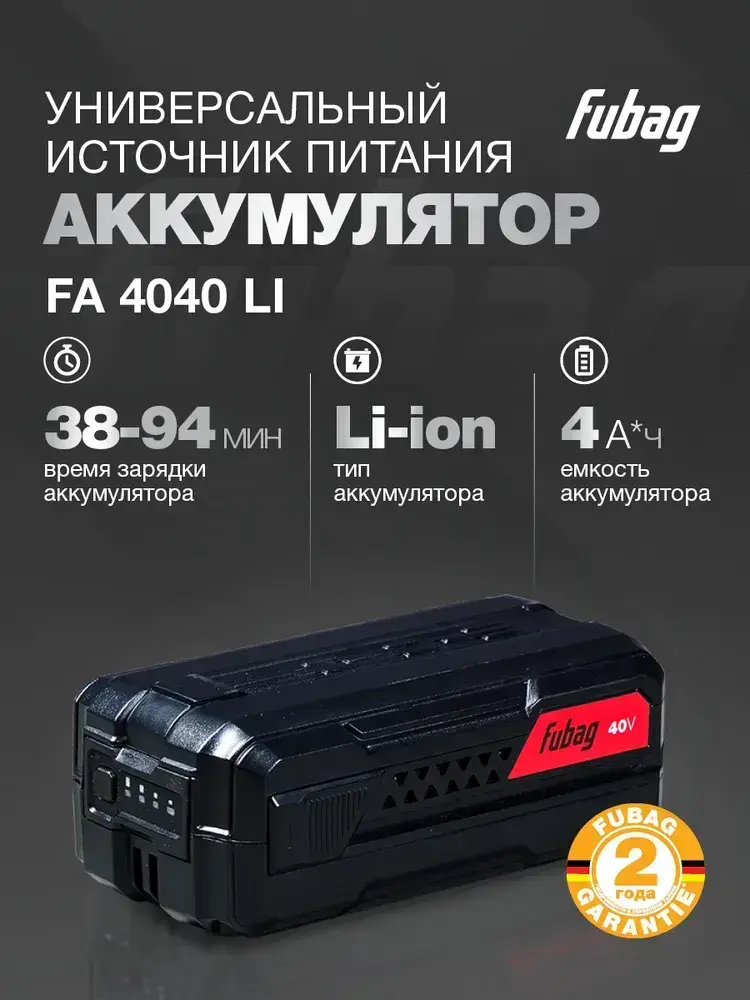 FUBAG Аккумулятор для аккумуляторной техники FA 4040 Li / емкость 4.0 А*ч, напряжение 40 В