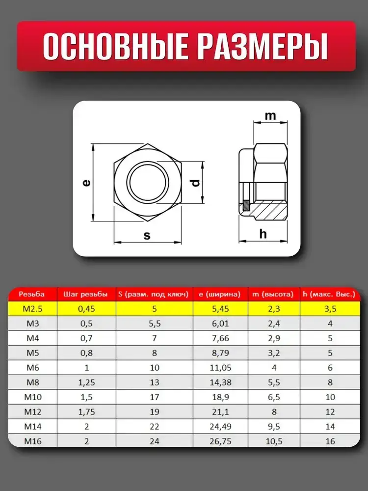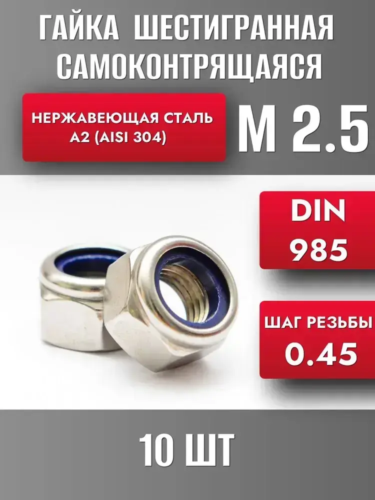 Гайка М2.5 самоконтрящаяся нерж. А2 DIN 985 (10шт)