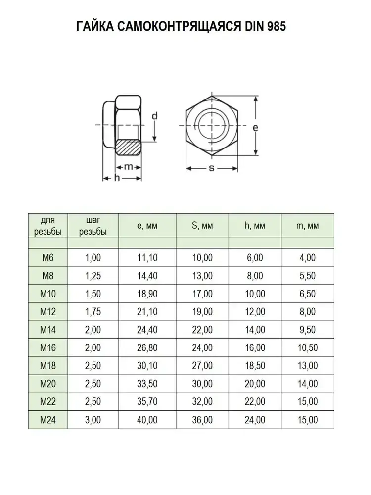Гайка М6 оцинкованная самоконтрящаяся - 100 штук