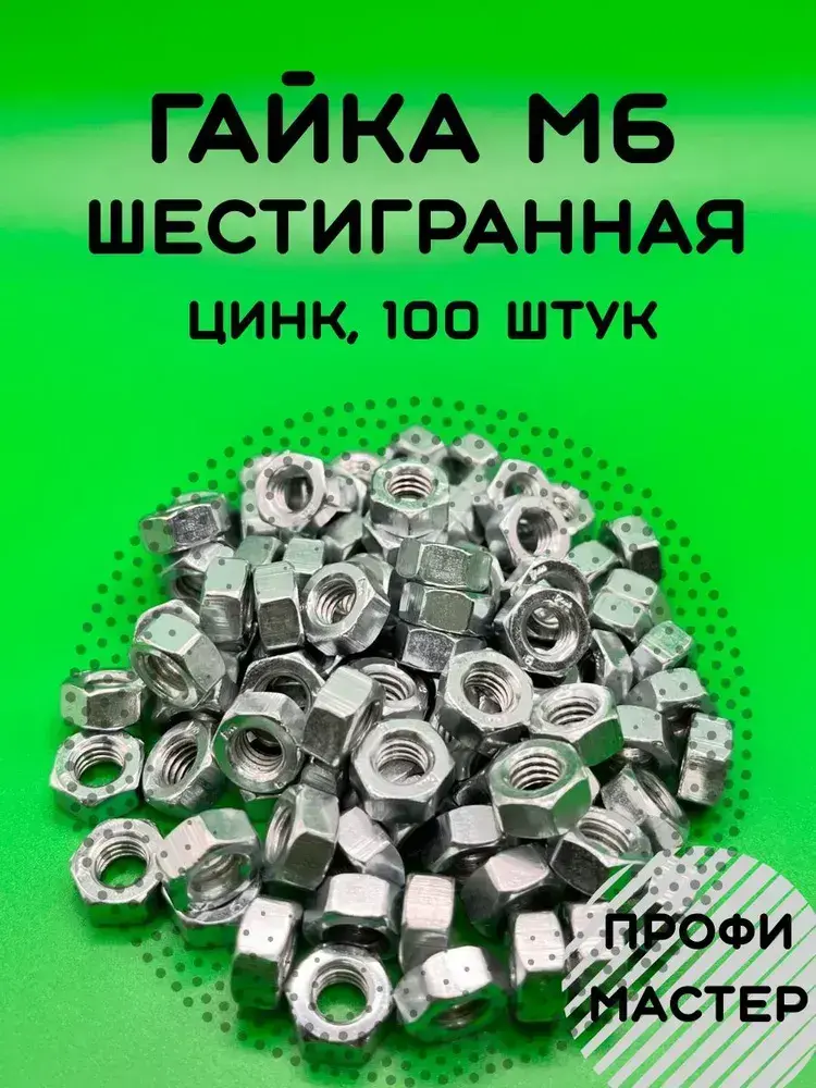 Гайка М6 шестигранная оцинкованная - 100 штук