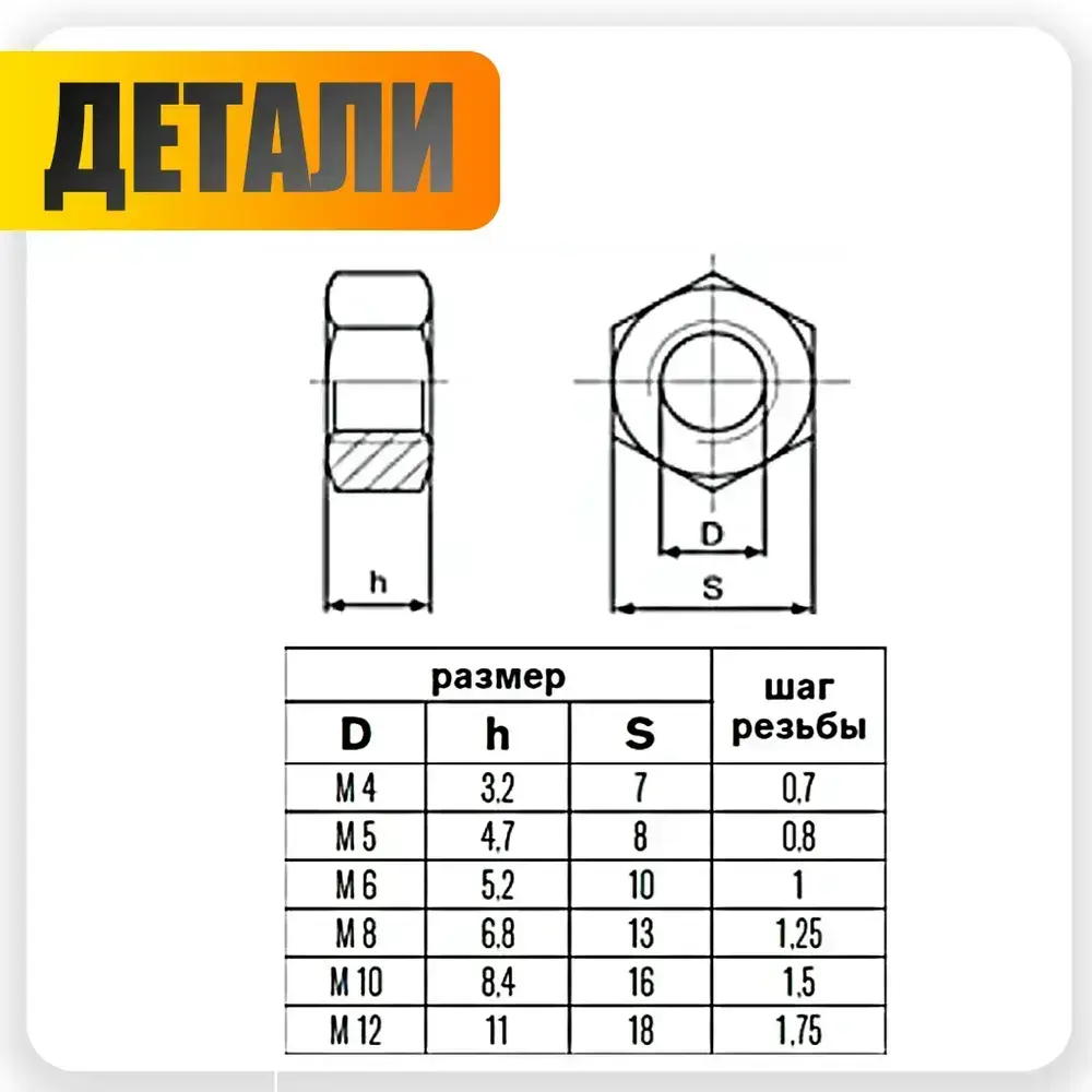 Гайка шестигранная М10, 50шт., DIN 934 Оцинкованная