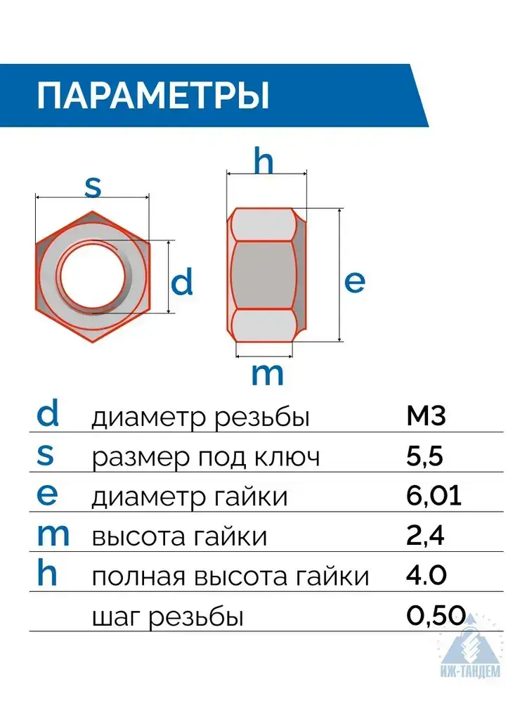Гайка стопорная М3, самоконтрящаяся DIN 934, с нейлоновым кольцом, оцинкованная (100 шт)
