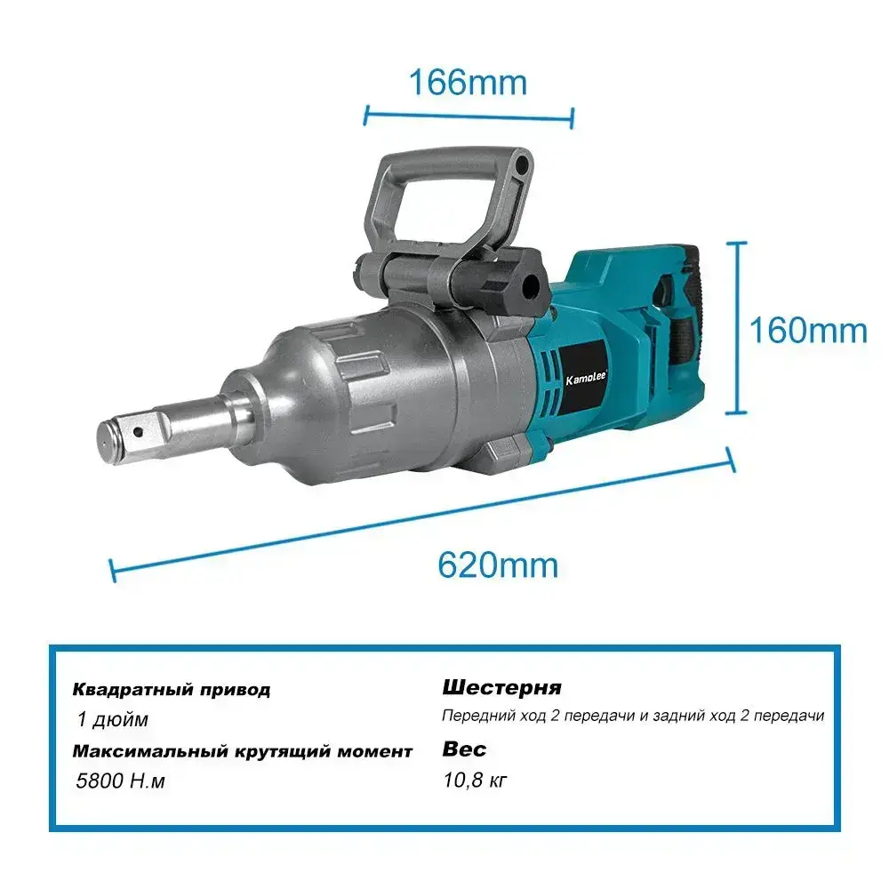 Гайковерт аккумуляторный бесщеточный ударный 1'' 5800Нм Kamolee(2 АКБ 9,0 Ач,Гофроящик)