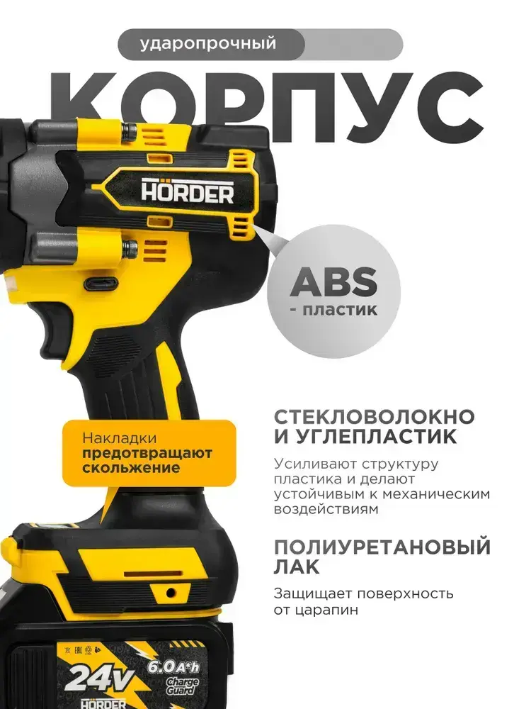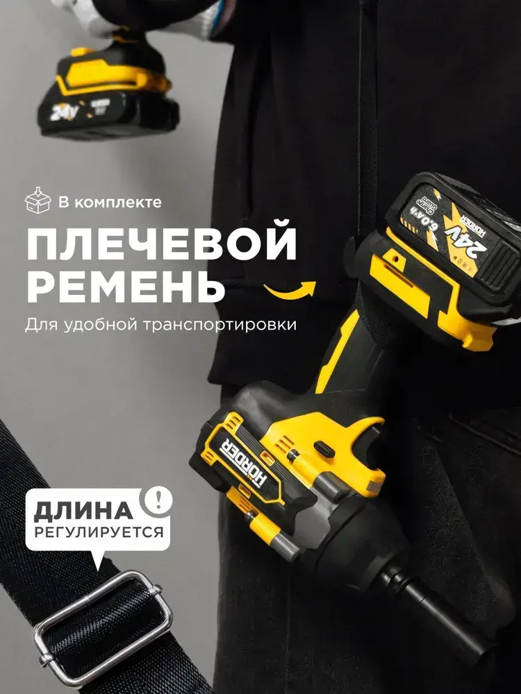 Гайковерт аккумуляторный HORDER HW-2000-Li2 PRO бесщеточный ударный в кейсе с набором оснастки 1800 Нм, 2 аккумулятора 24 В 6 Ач