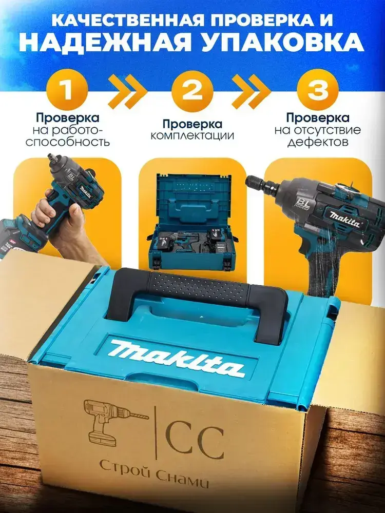 Гайковерт аккумуляторный Makita 1500Нм. , ударный,бесщеточный, 2 АКБ,1/2 дюйма, профессиональный