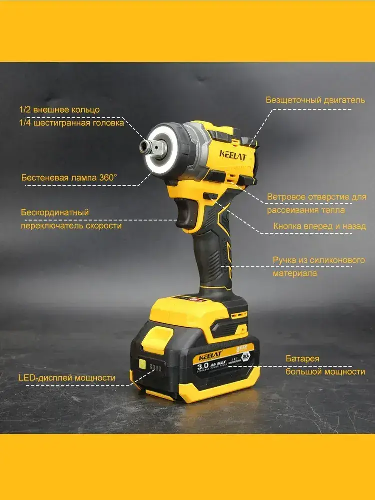 Гайковерт аккумуляторный ударный безщеточный/keelat/2 АКБ