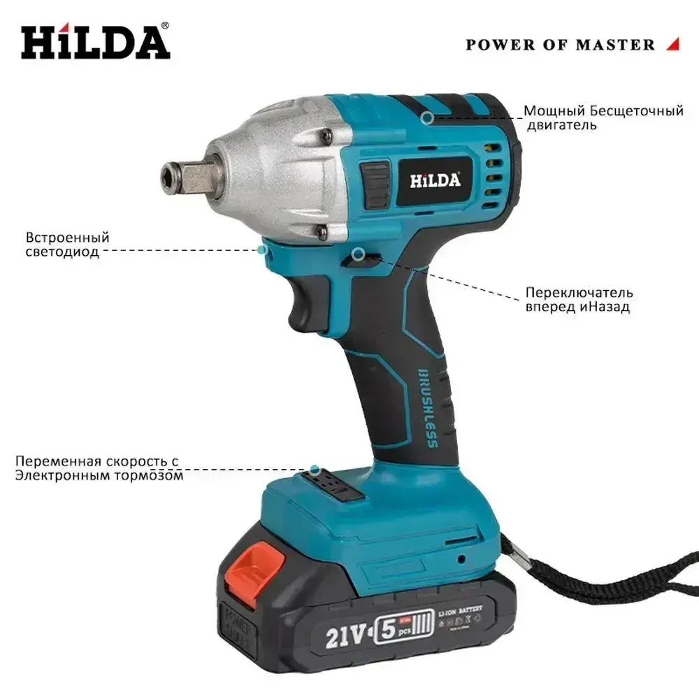 Гайковерт электрический /Винтоверт аккумуляторный ударный бесщеточный , 21V,1800W